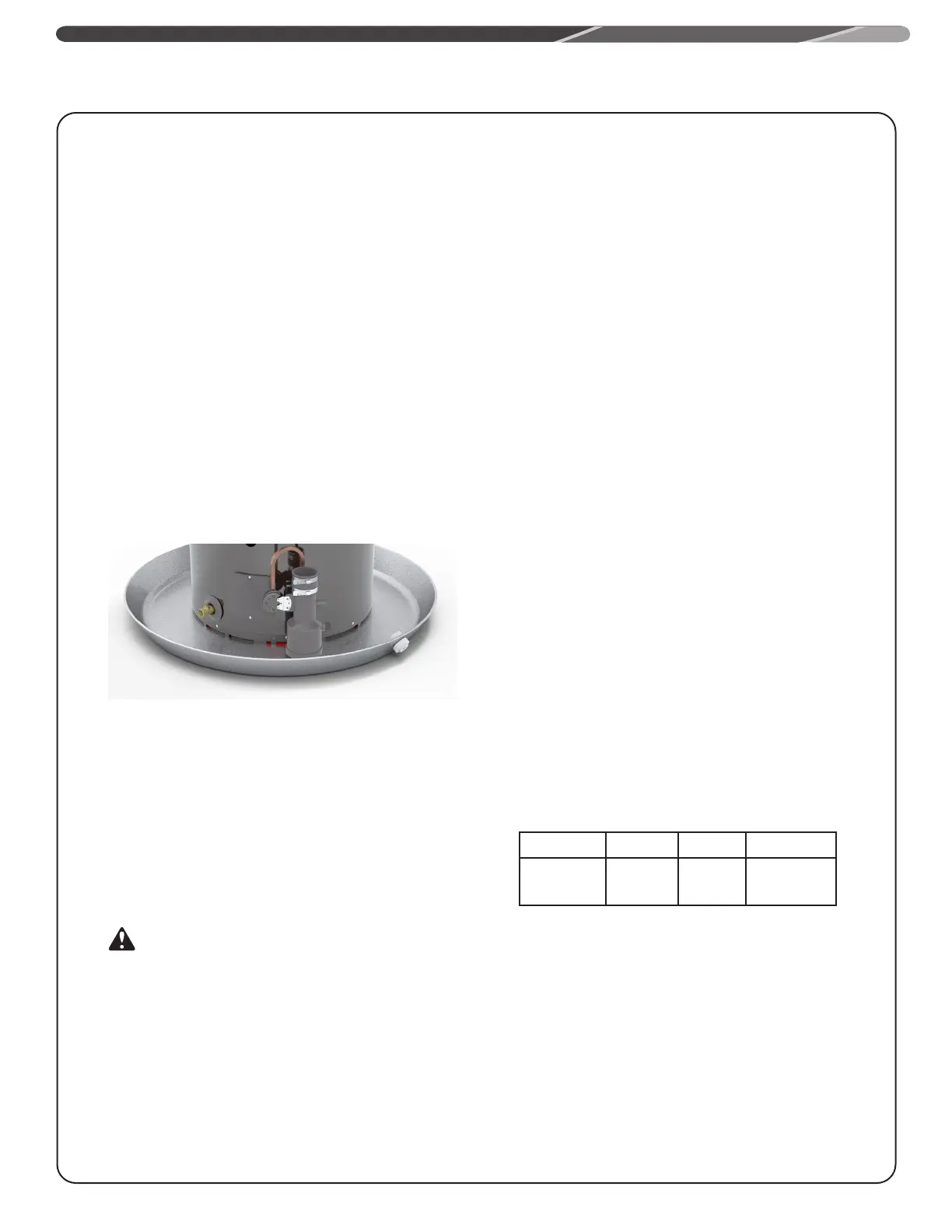 The water heater must be positioned in the drain pan as