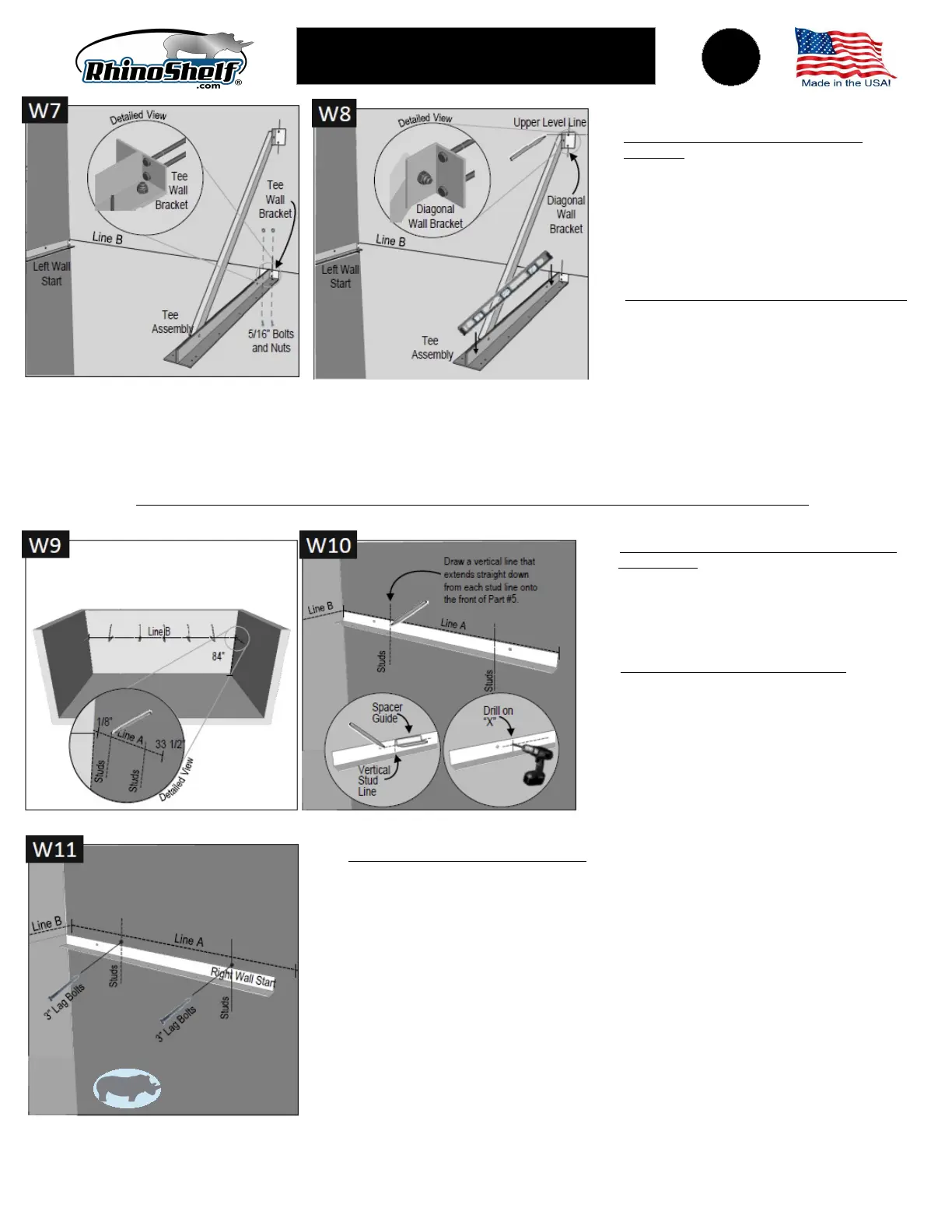 W11. FASTEN RIGHT WALL START TO WALL. Align the Right Wall Start’s top edge with Line A, placing it