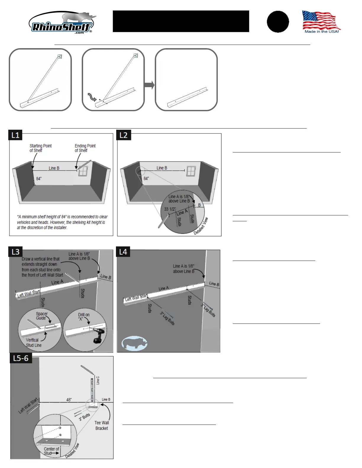 L1. MARK LOCATION OF SHELF ON FRONT WALL. To