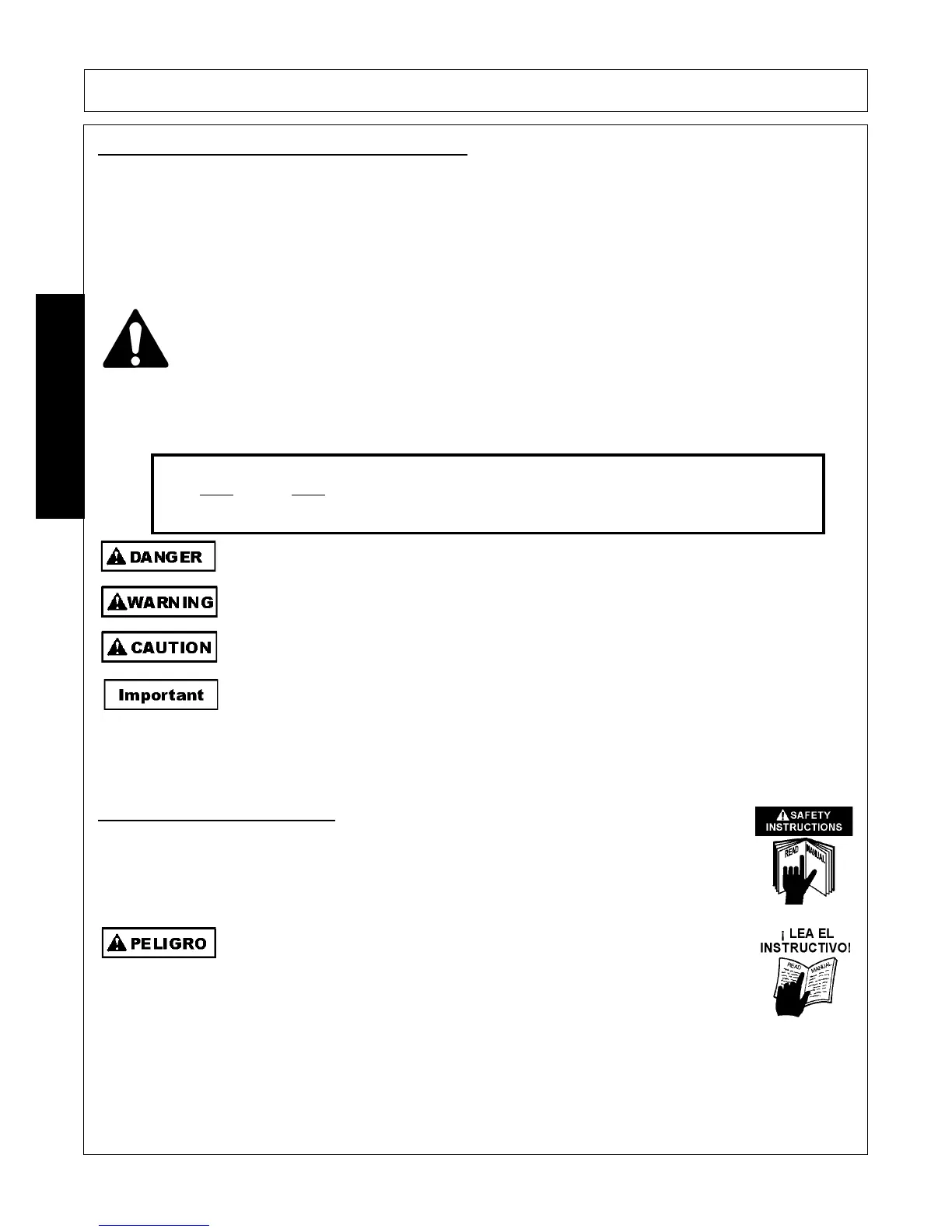 The Safety Alert Symbol combined with a Signal Word, as seen below, is used throughout this
