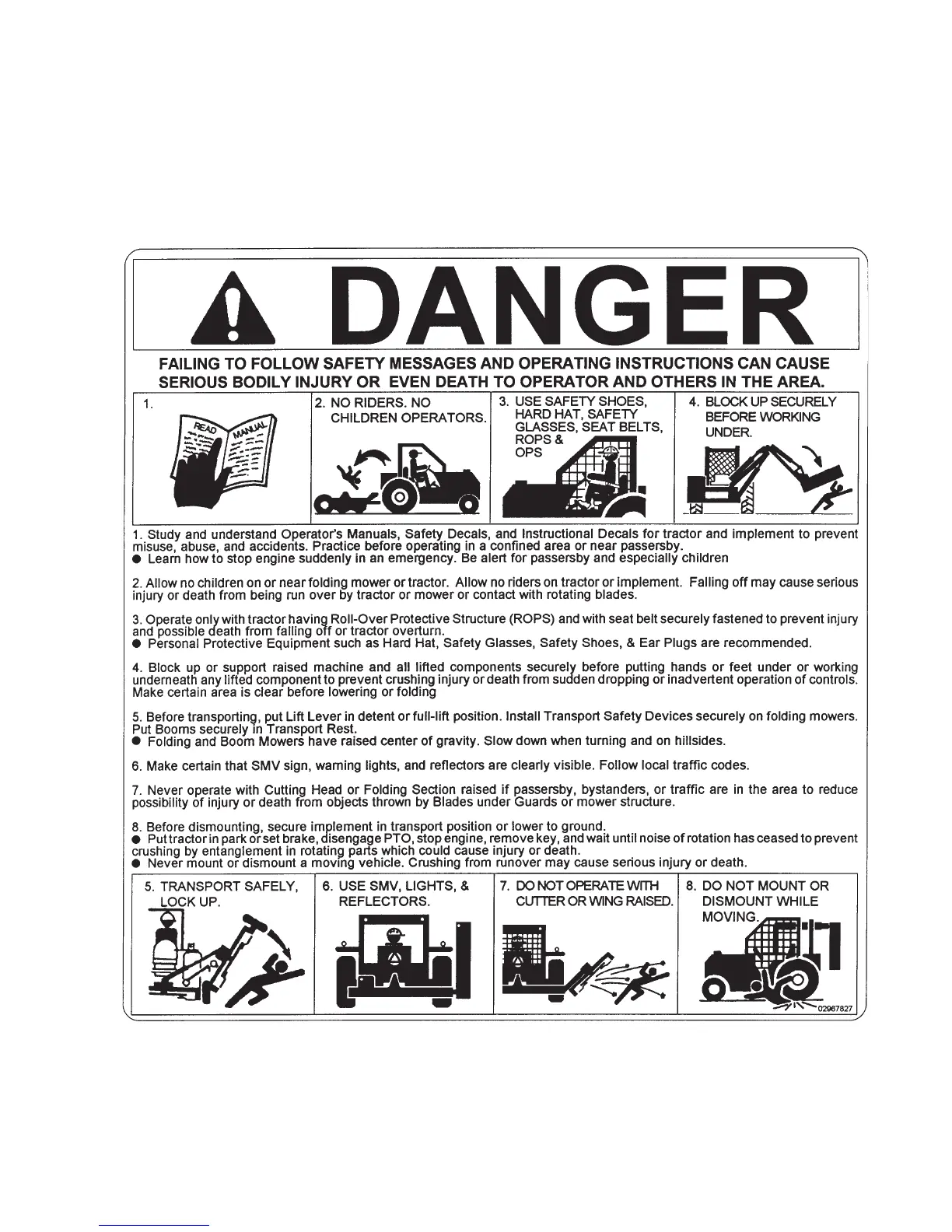 BEFORE YOU START!! Read the safety messages on the implement and shown in your manual.
