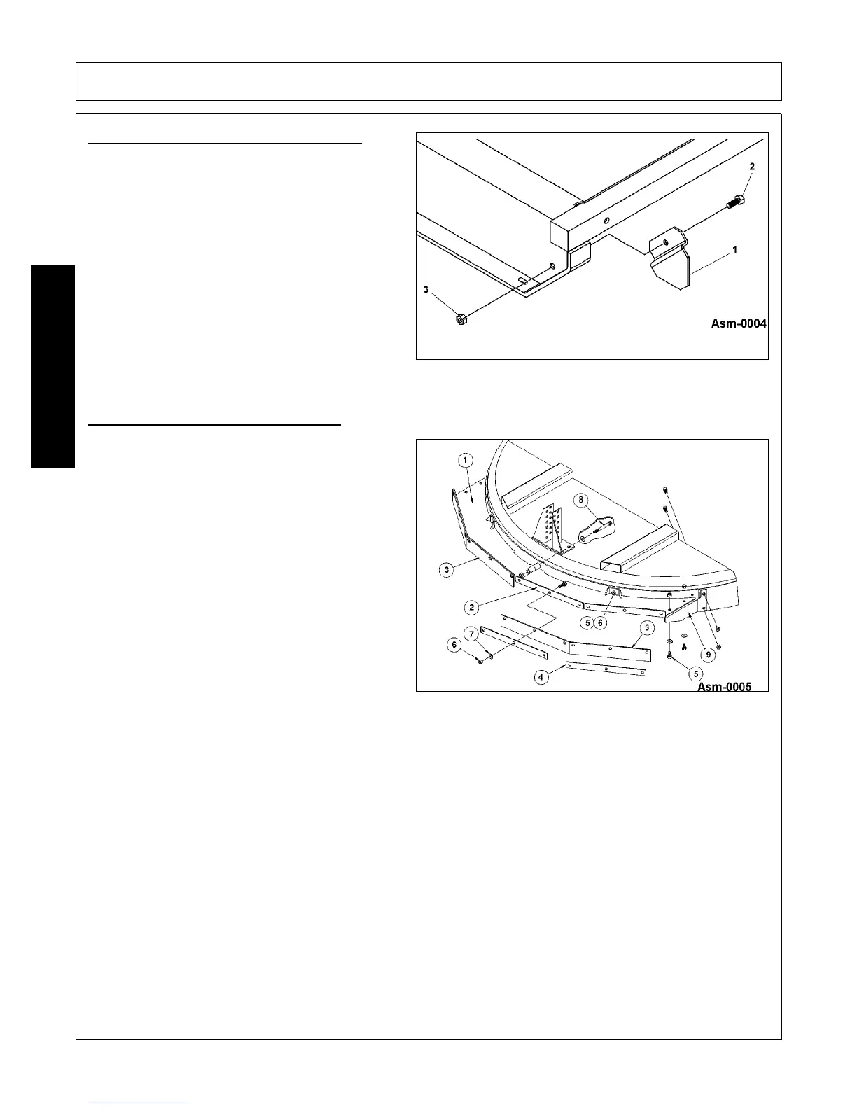 1. Attach both Deflectors (1 & 2) to deck using 1/