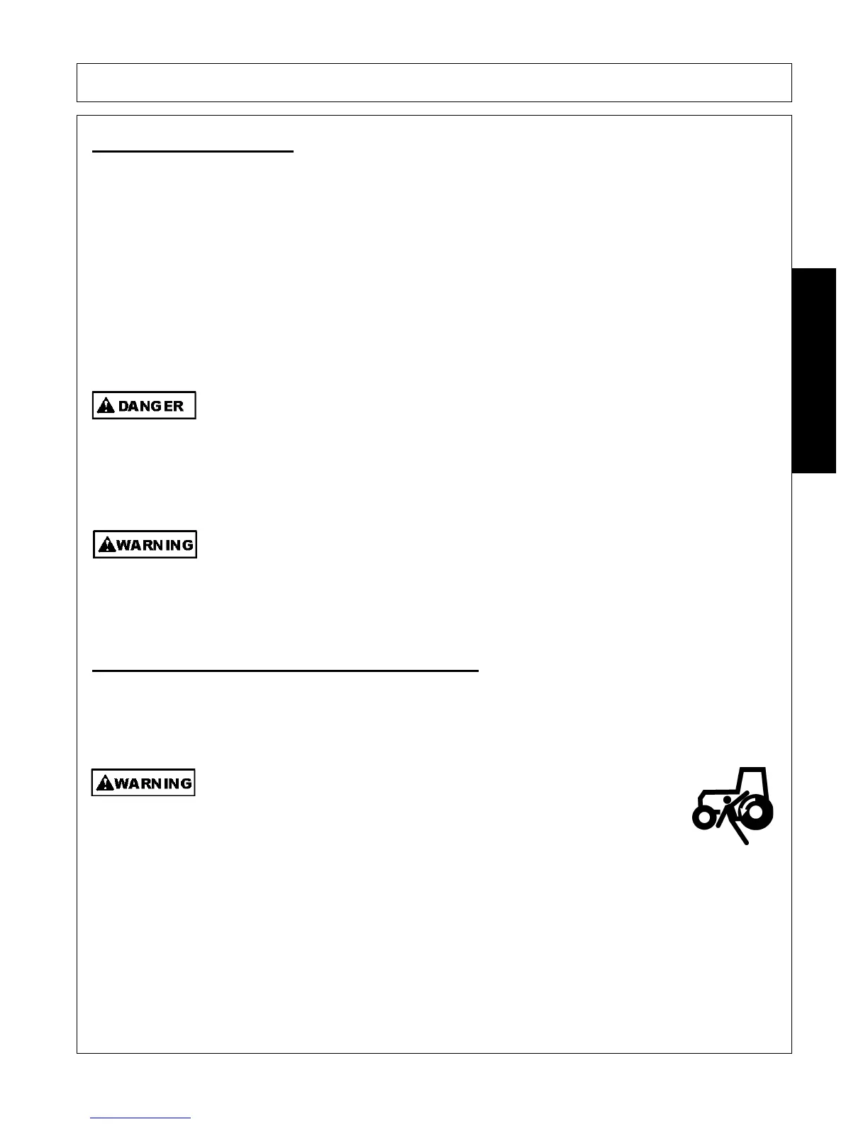 Before getting onto the tractor, the operator must read and completely understand the implement and tractor