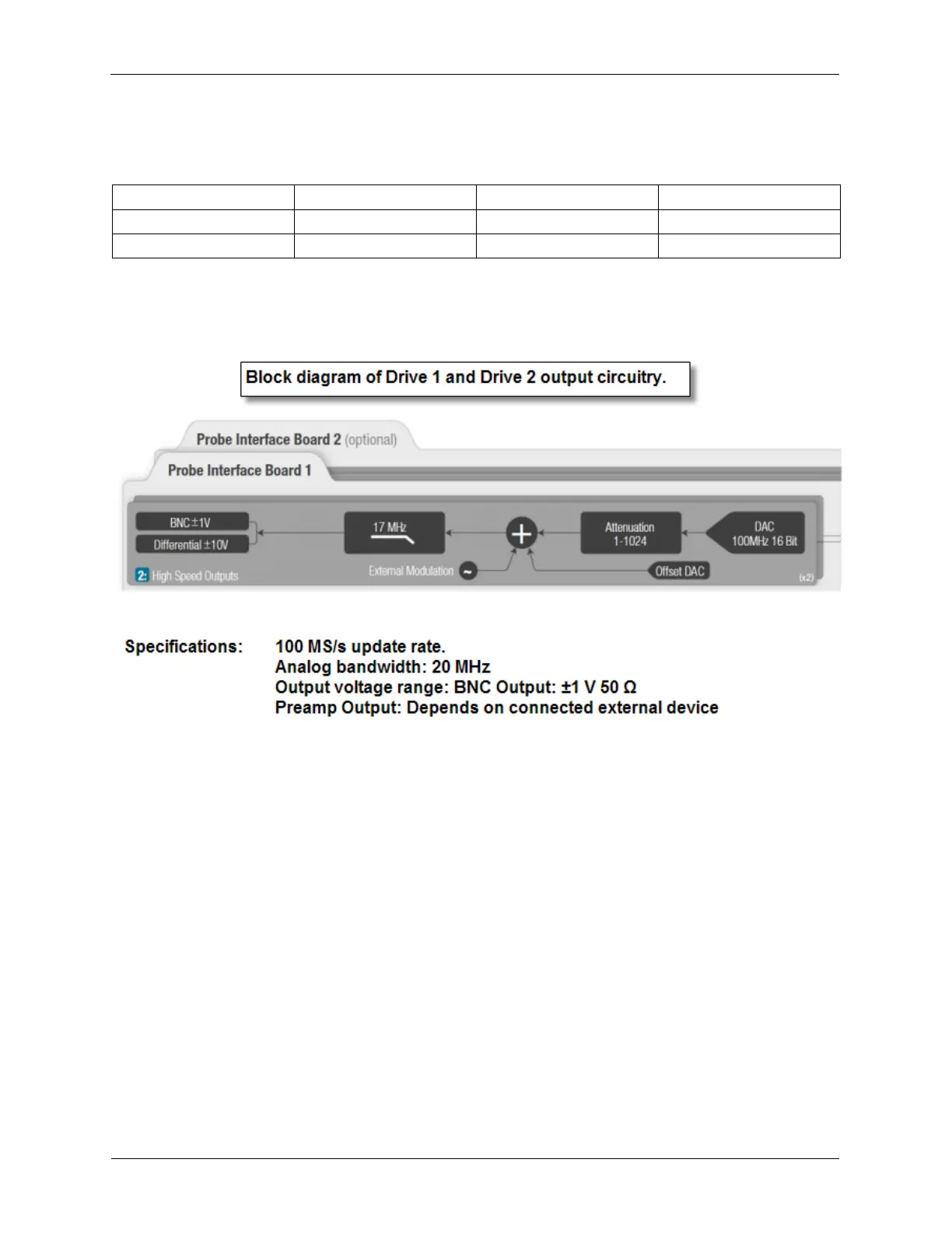 The CH 1 Drive and CH 2 Drives also are output on the Preamp connector. These outputs are 100 Ω