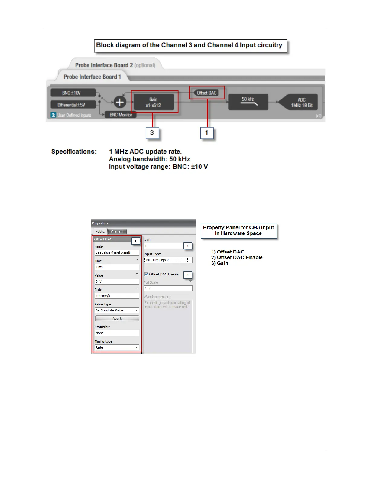 The Offset Enable (2) check box enables the Offset DAC to be added to the input signal.