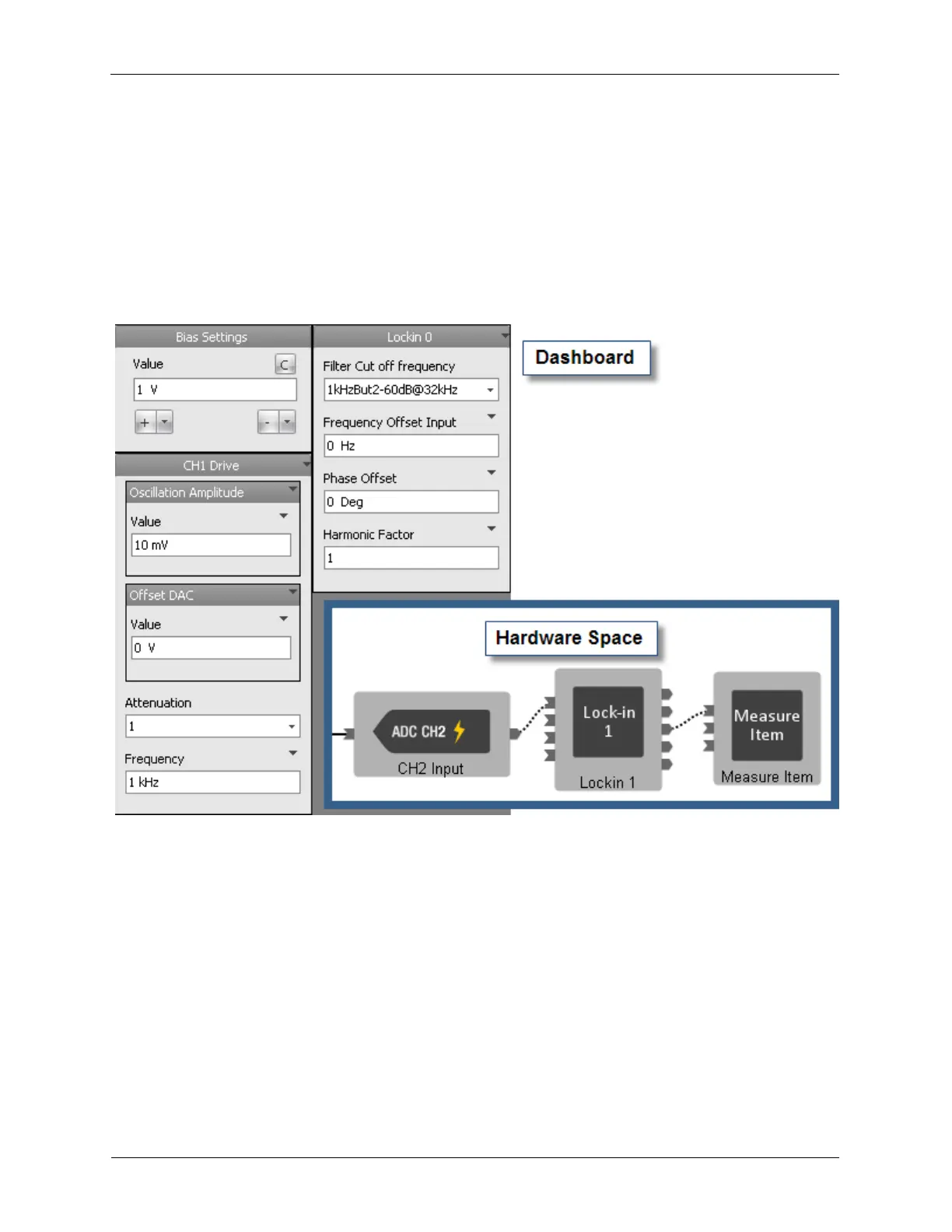To begin, the parameters of the AC signal that will modulate the Bias Voltage are set on the dashboard.