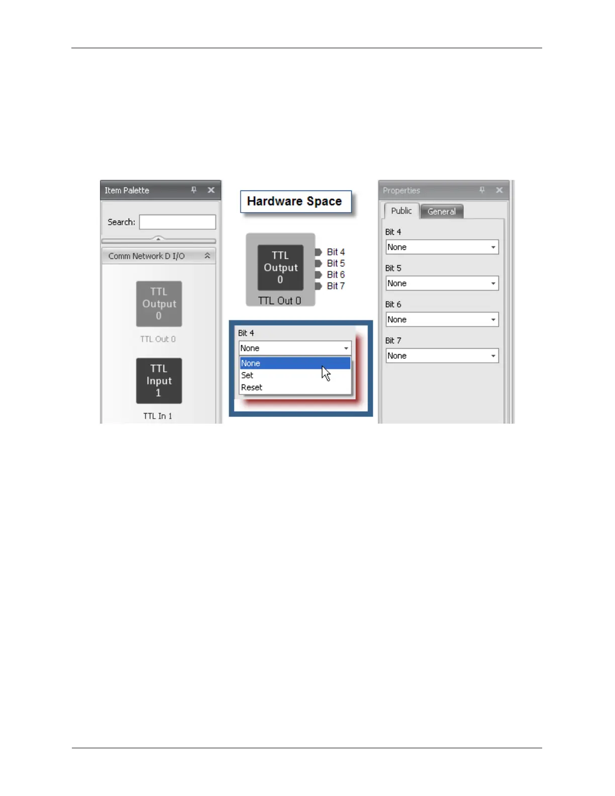 Upon power up, the value of each TTL bit will be set according to the value set on the Properties panel