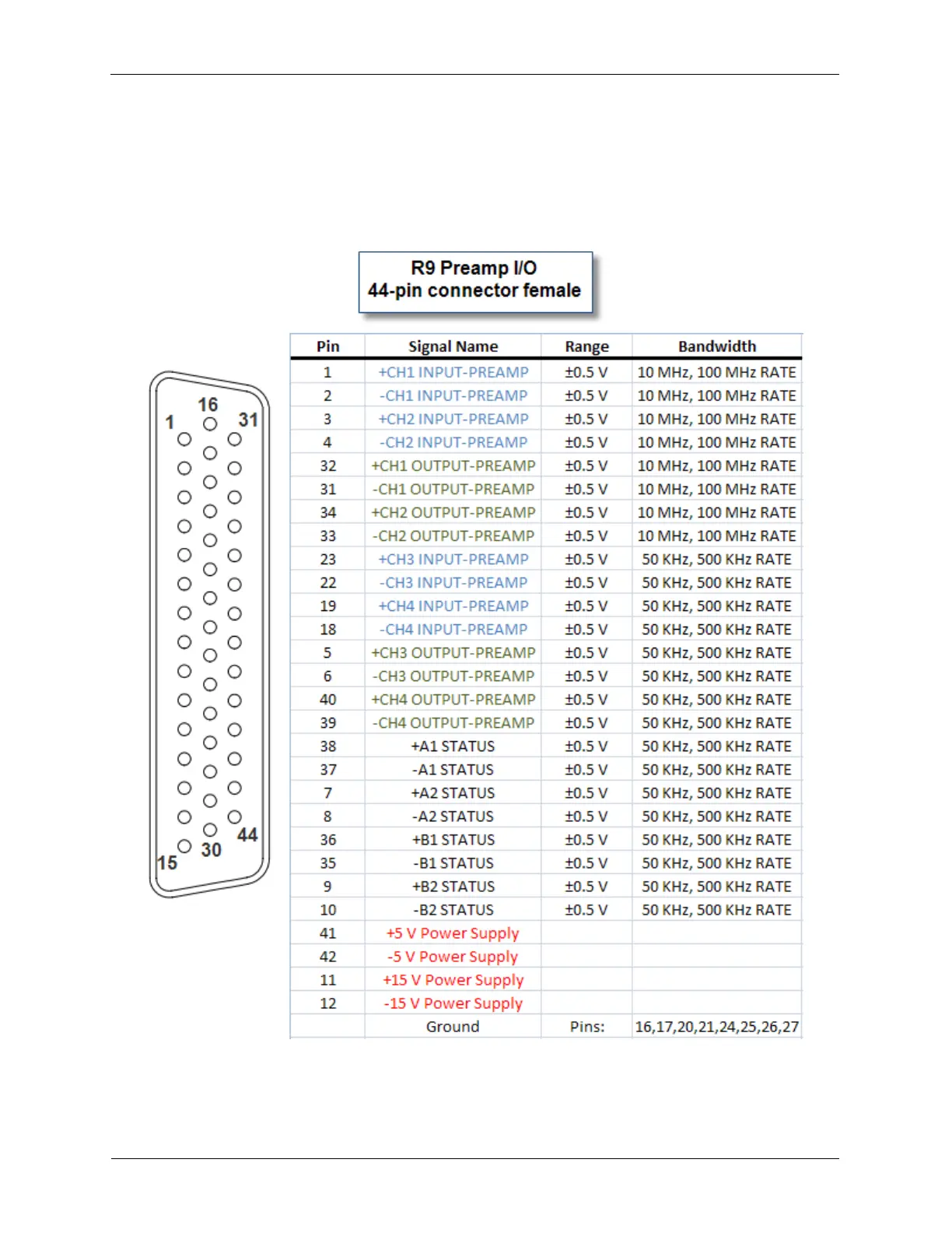 Figure D.1. R9 Preamp I/O 44-Pin Female Connector