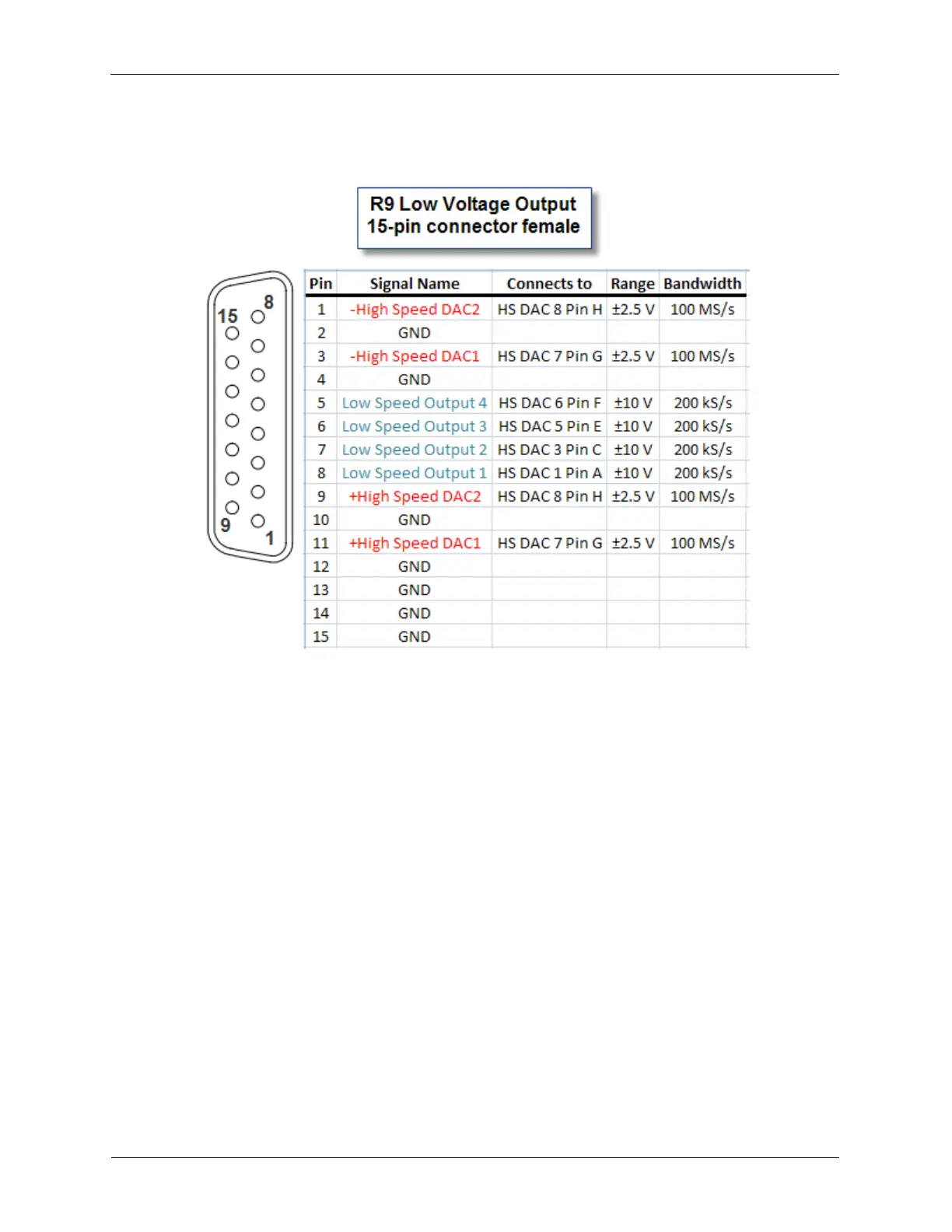 Figure D.7. R9 Low Voltage Outputs 15-Pin Female Connector