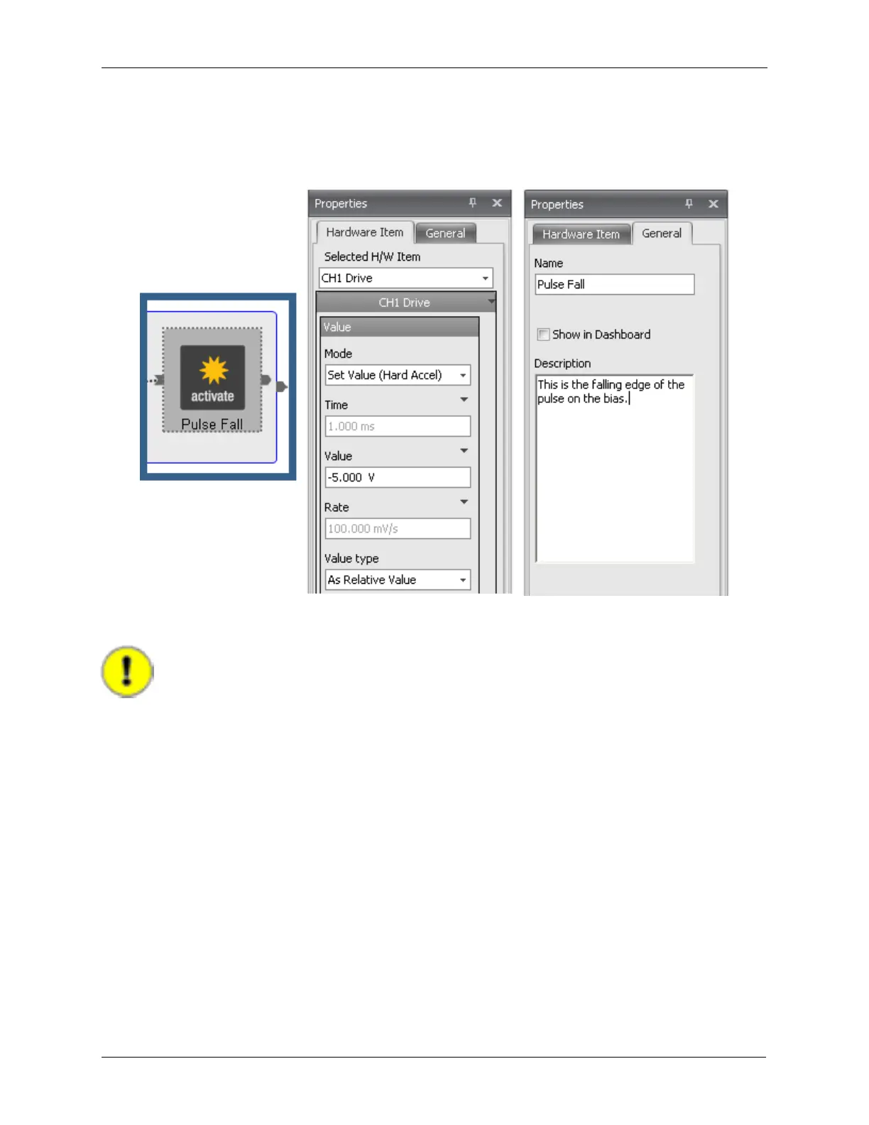The Value is now set to -5 V and the Value type is set to Relative Value. As the rising edge of the pulse