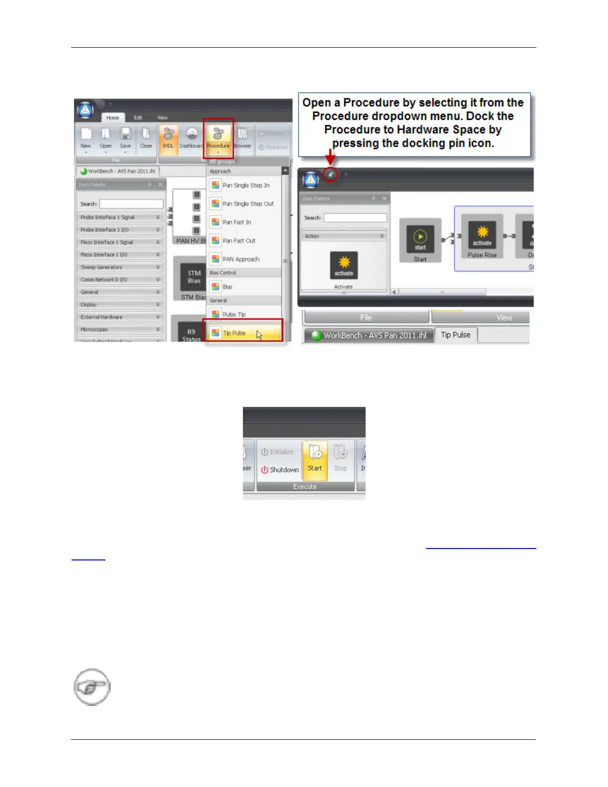 Now that the procedure is docked to Hardware Space, it can be run by pressing the Start button on the