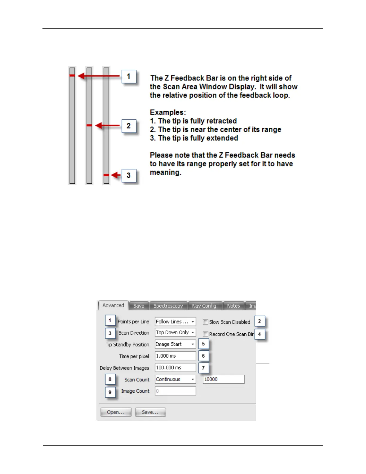 12. Tip Position: The tip's current position is shown with a Green Arrow in the Scan Area Window