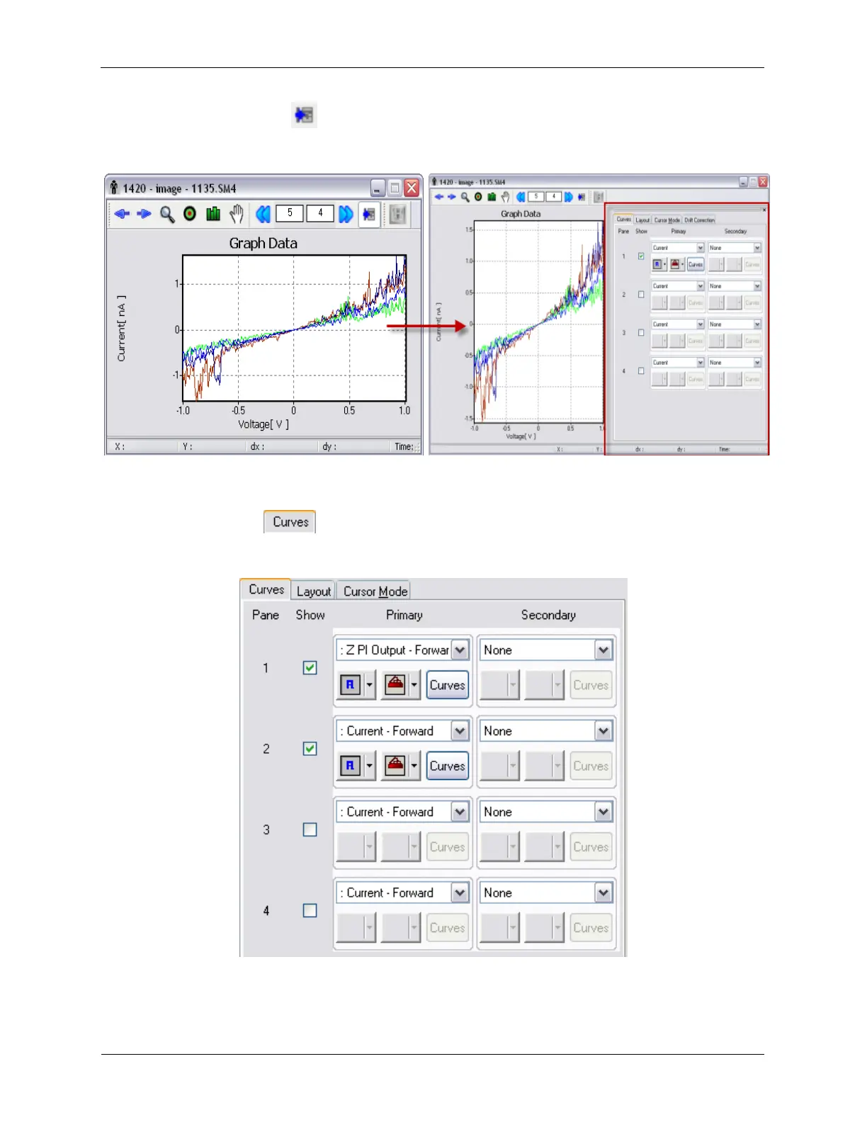 RHK Technology R9 - Settings Tab; Curves Tab; Figure K.21. XY Graph Settings; Figure K.22. XY Graph Settings - Curves