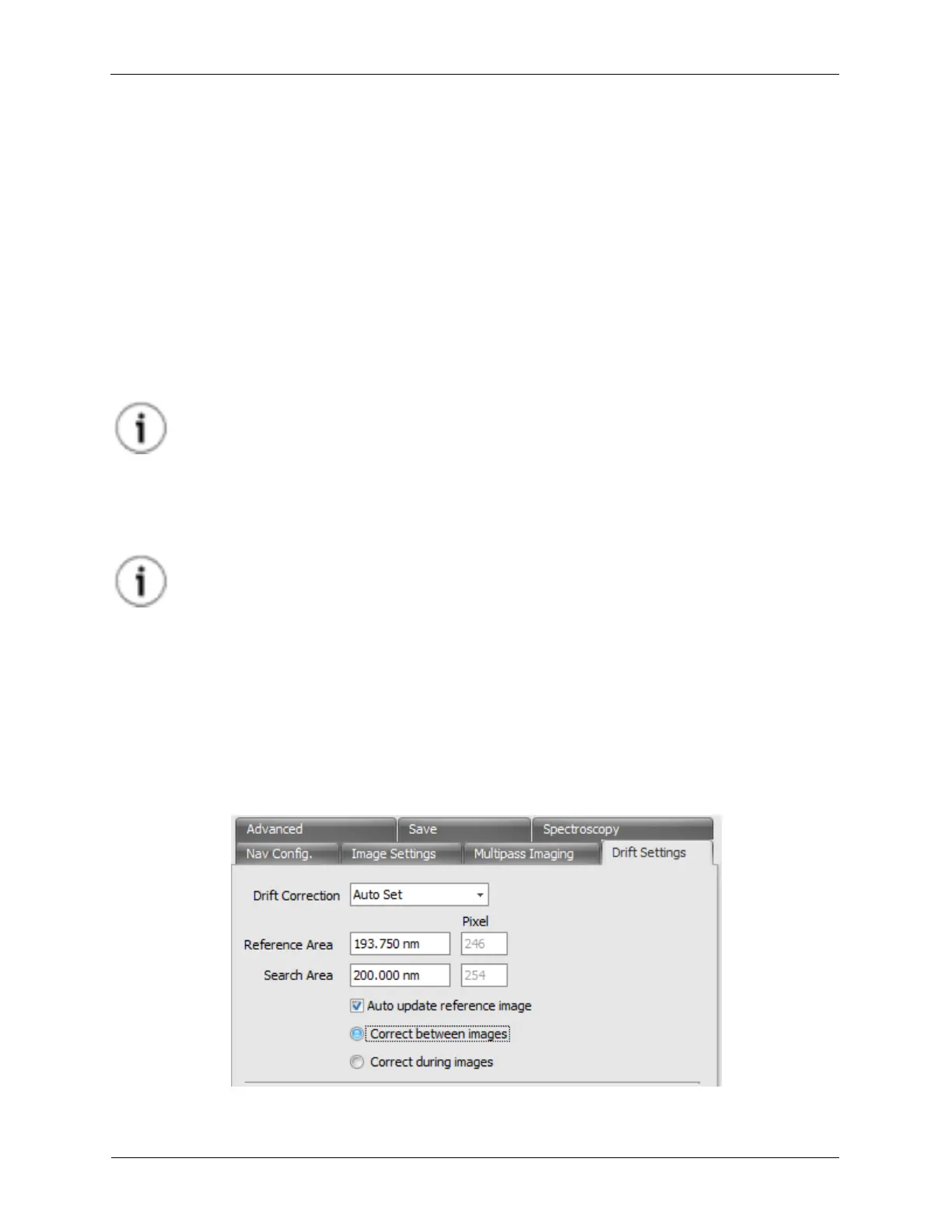 You will notice there is a Drift Settings tab on the Scan Area Window. We have three Drift Correction