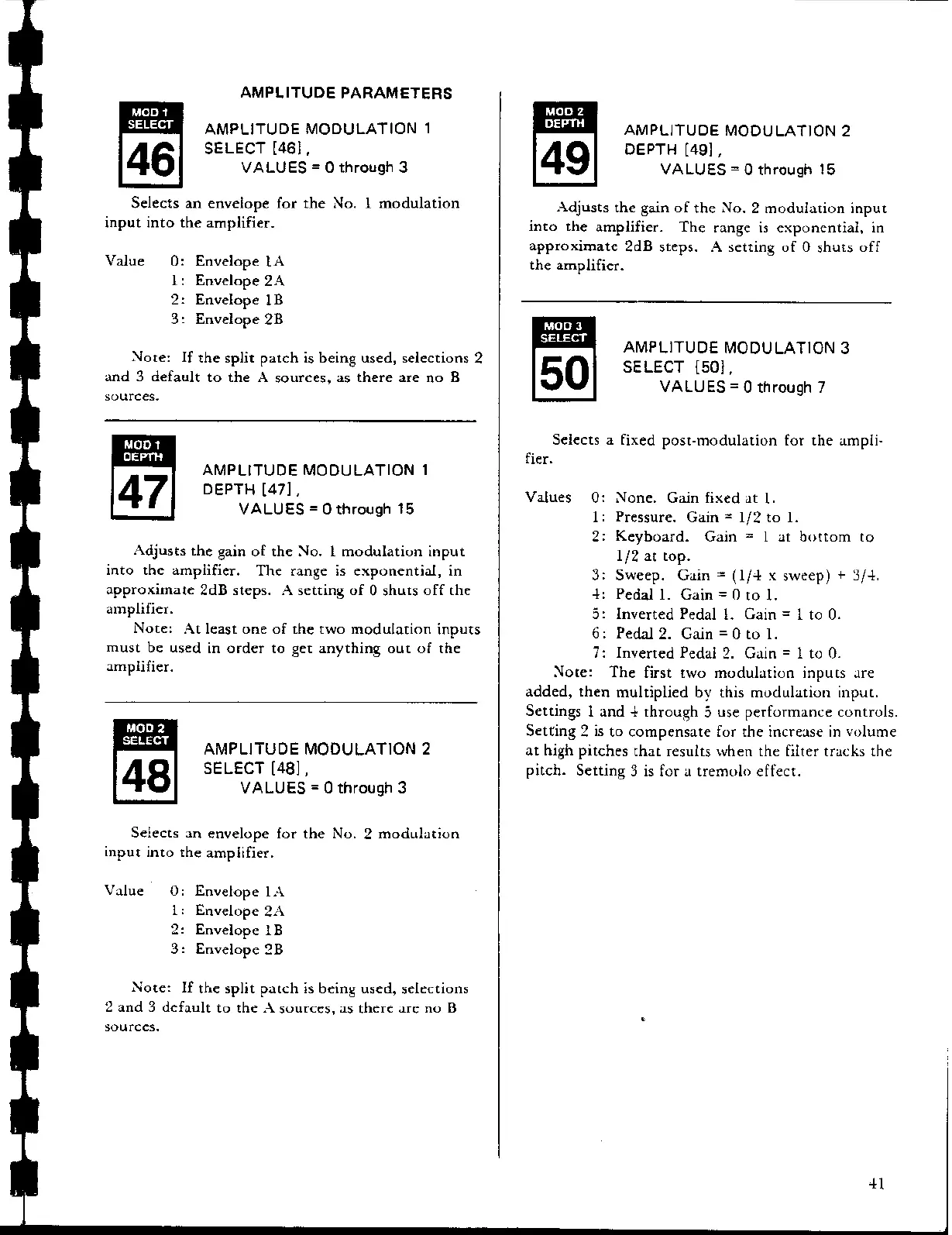 Rhodes CHROMA - AMPLITUDE PARAMETERS; Amplitude Modulation 1 & 2; Amplitude Modulation 3 (Fixed)