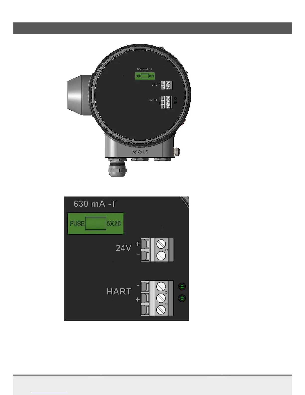 Connection 24 VDC and HART on rear side SDM (detail)