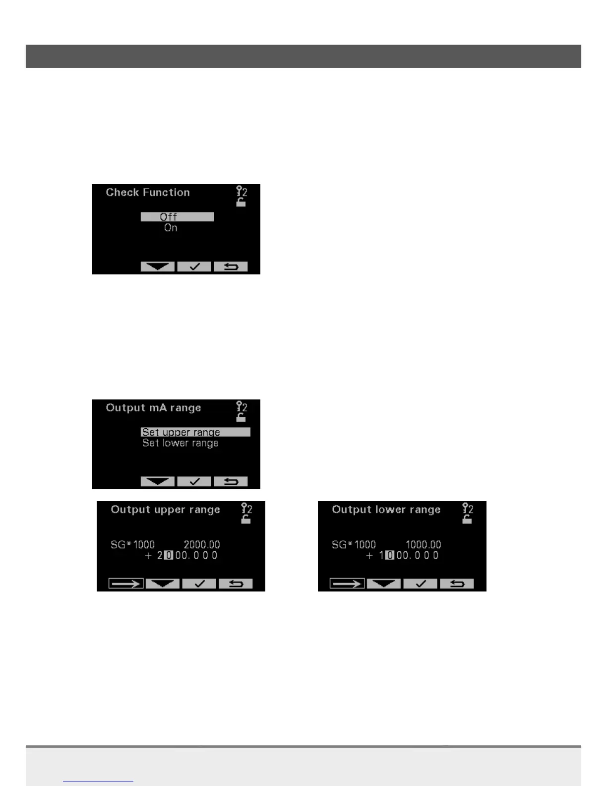 Setting Output mA range is used to assign which value is corresponding to the 4 and 20mA range of the