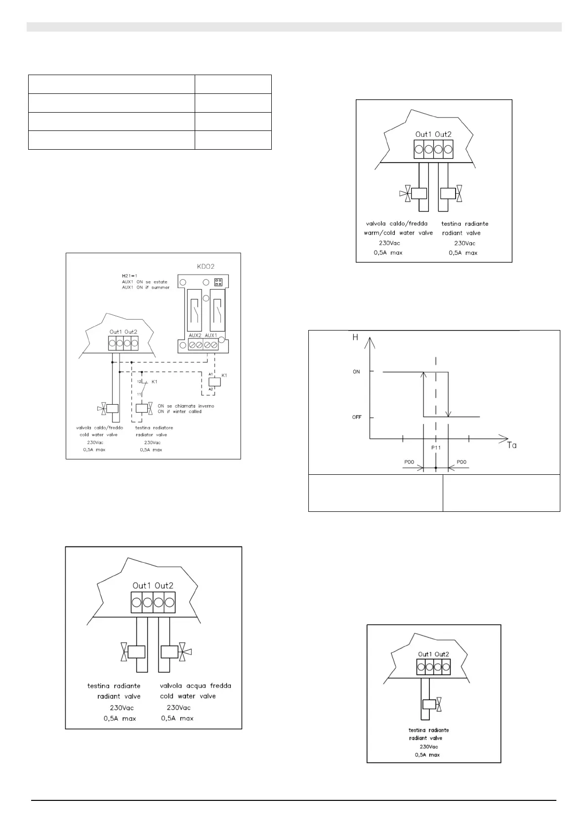 Dip-switches configuration): the Out1 output activates the hot / cold