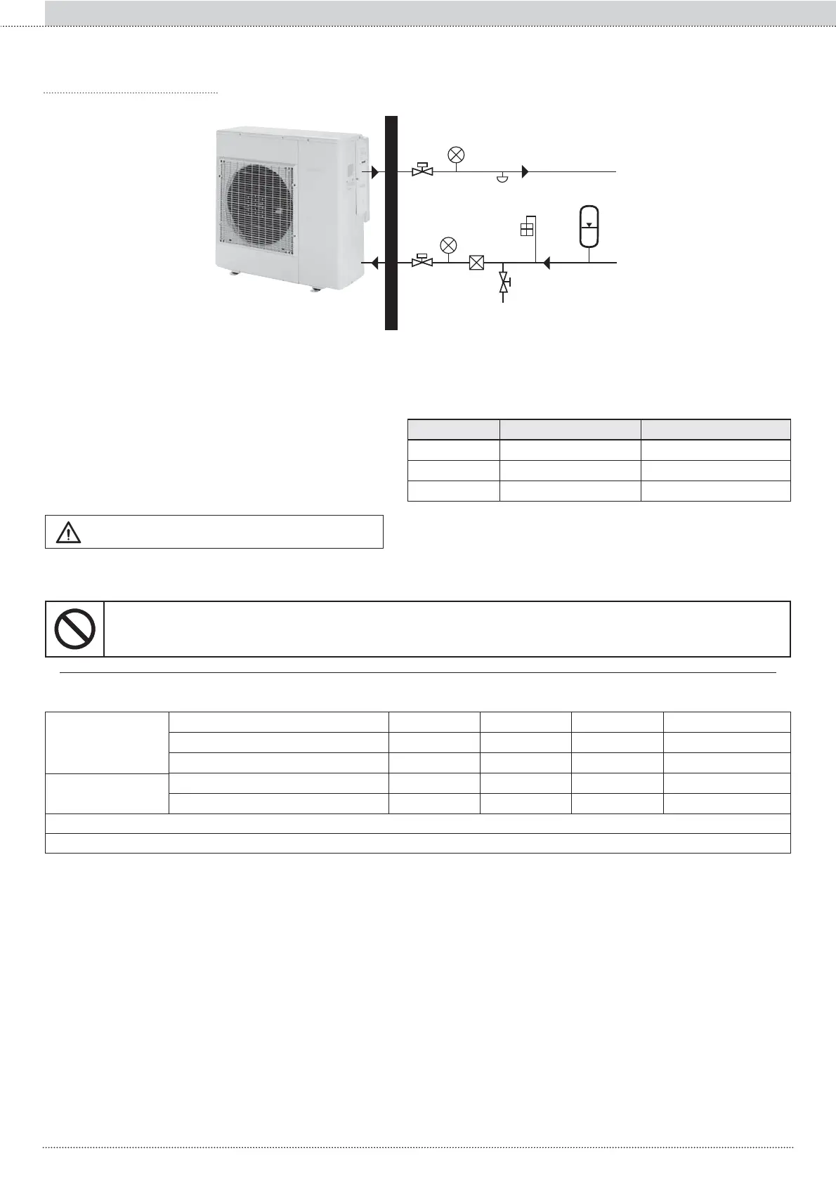 • La cantidad de agua en la instalación (tuberías+terminales+acumulador) no debe ser inferior a los valores indicados en la tabla.