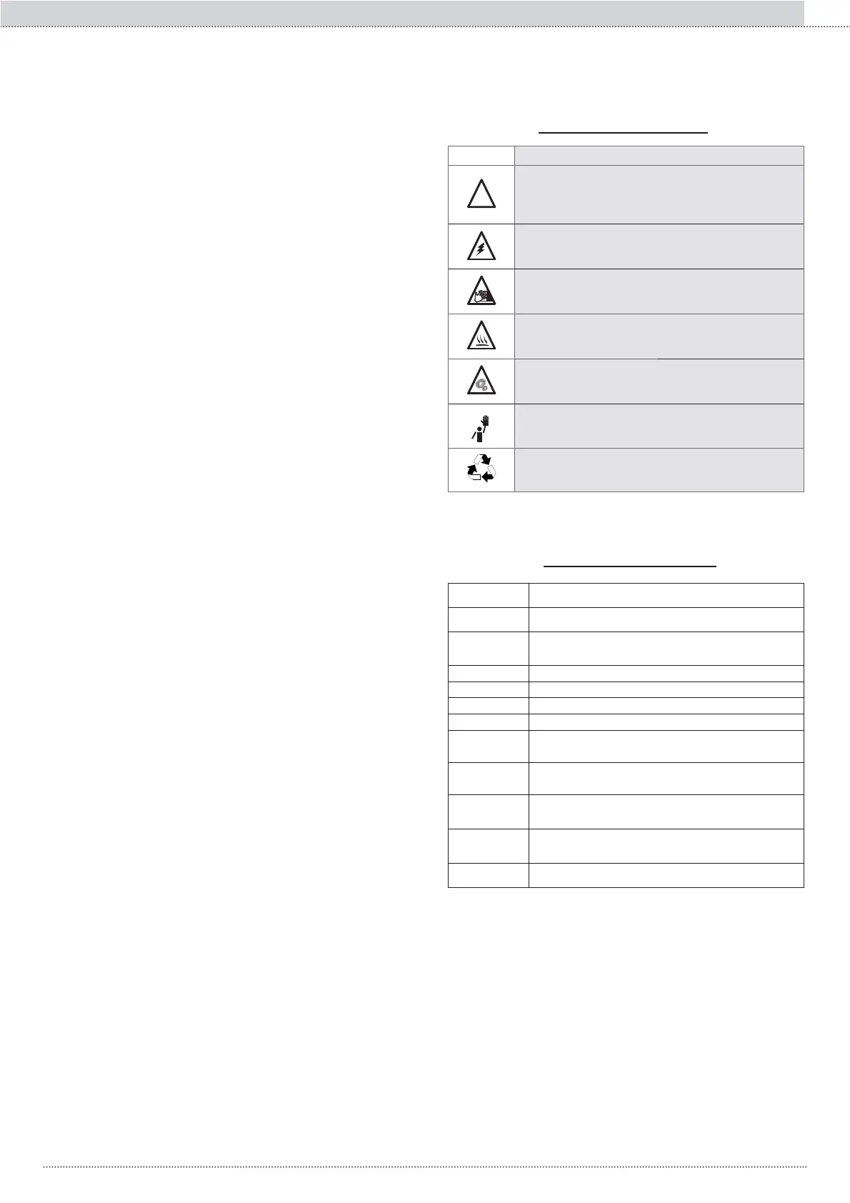 L’indicazione PERICOLO ORGANI IN MOVIMENTO è usata