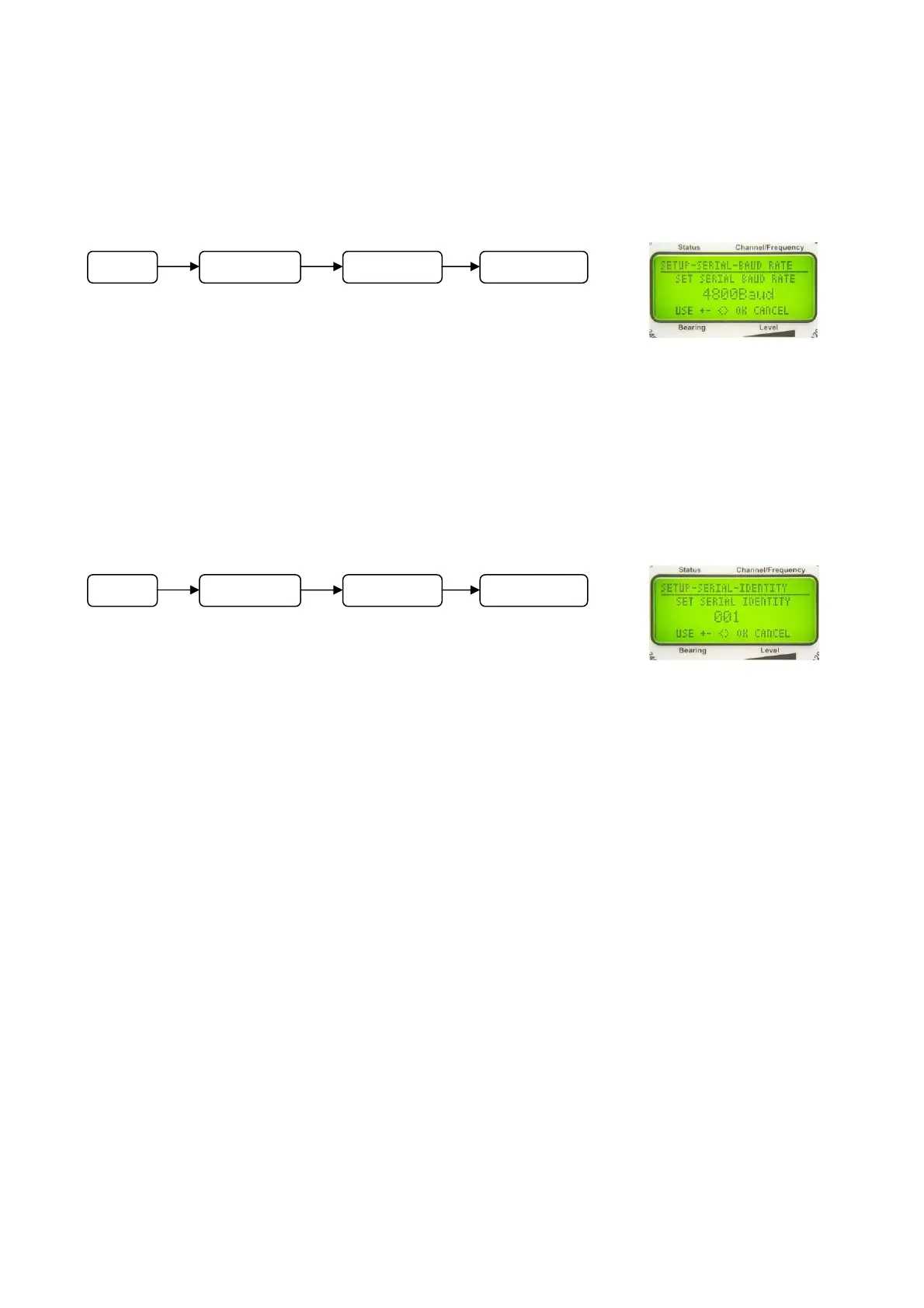 submenu SETUP – SERIAL - BAUD RATE, the velocity of data