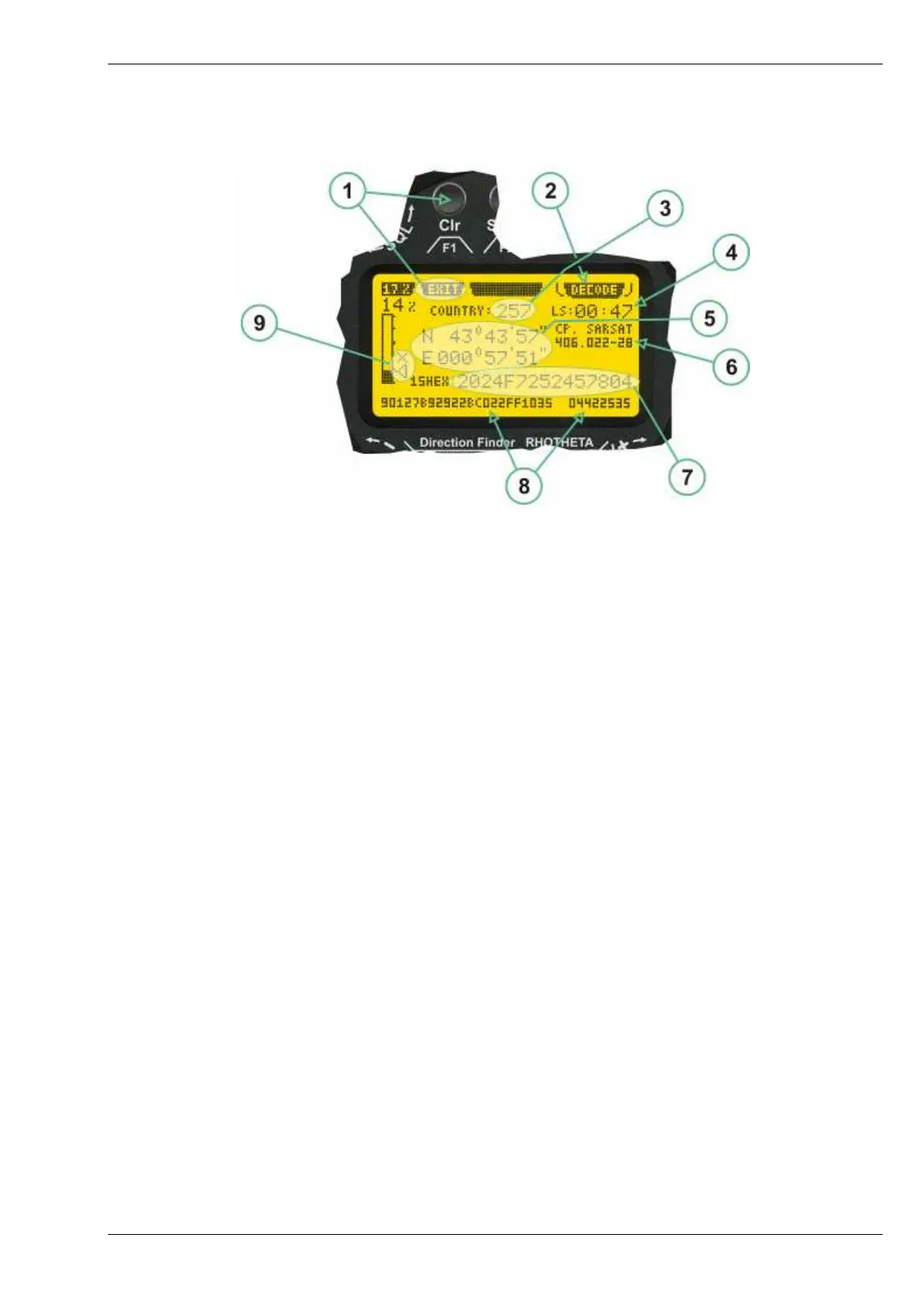 (1) >Exit< push button (F1 button) allows to leave the decode window and to go back to the COSPAS-