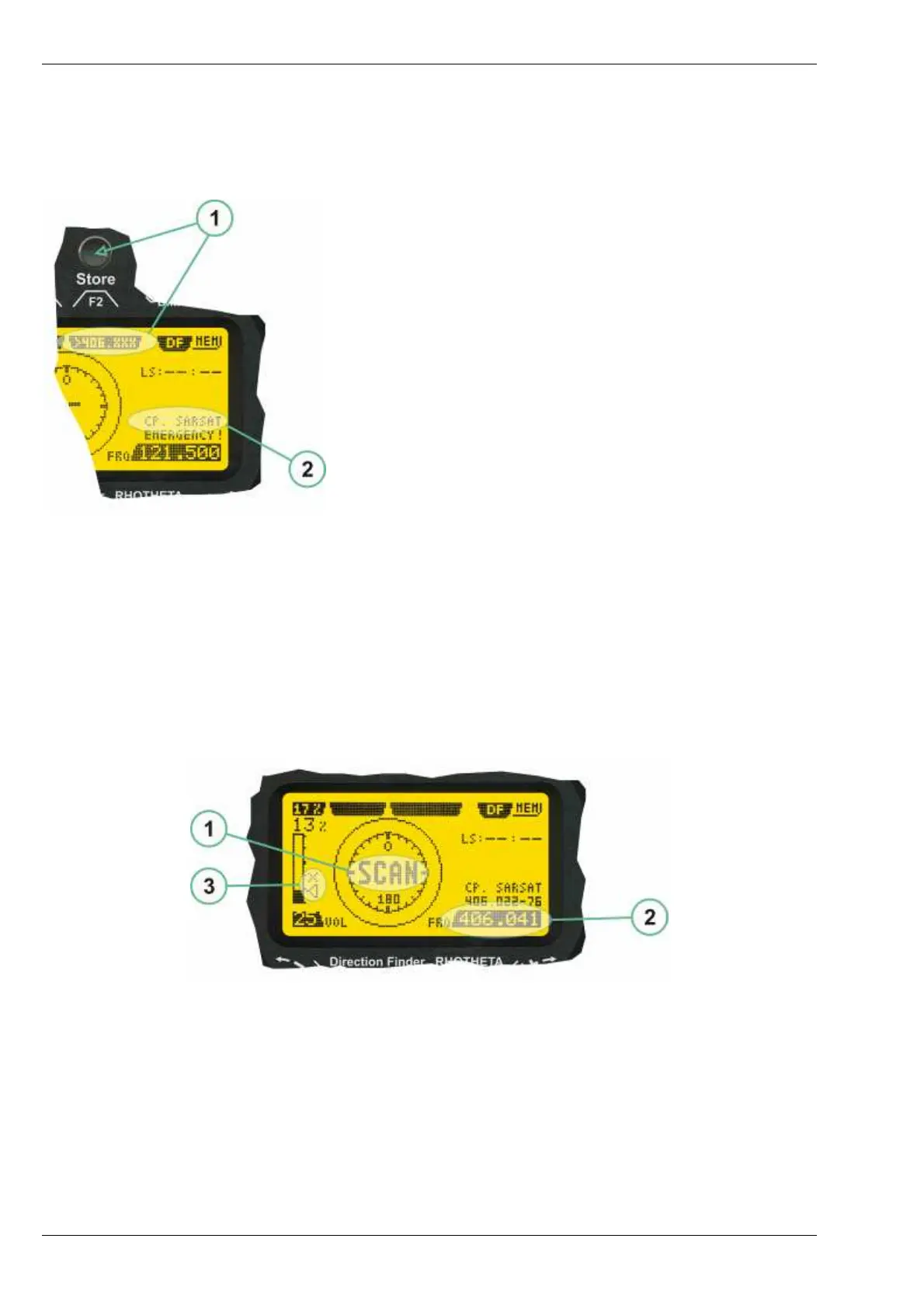 (2) Frequency display indicating the COSPAS-SARSAT scanning frequency range.