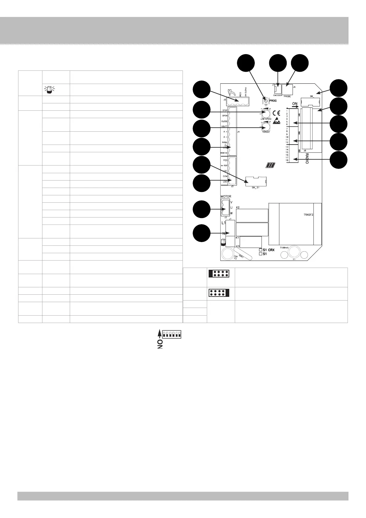 DIP 1-3 MEMORISATION/ANNULATION CODES RADIO COMMANDE OUVERTURE