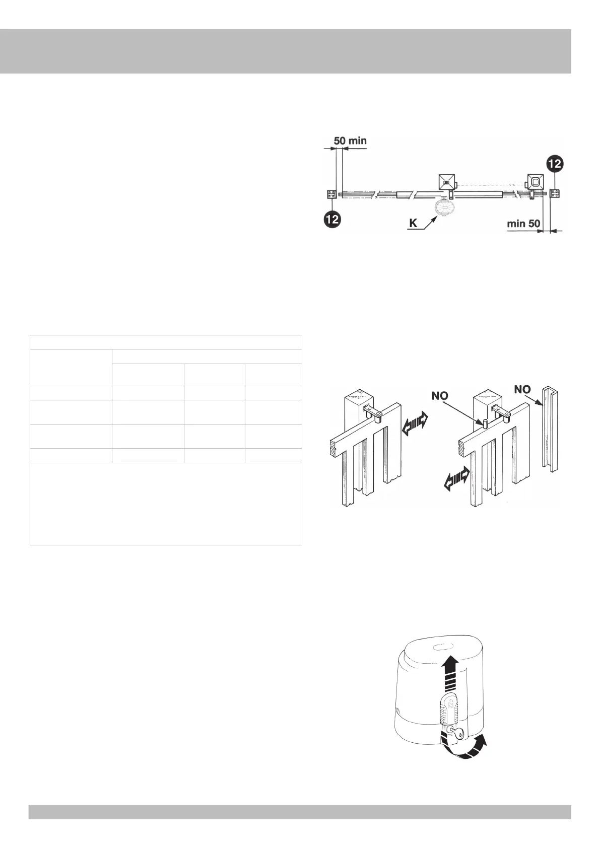 - That the physical effort necessary to move the gate leaf should not be higher than 225