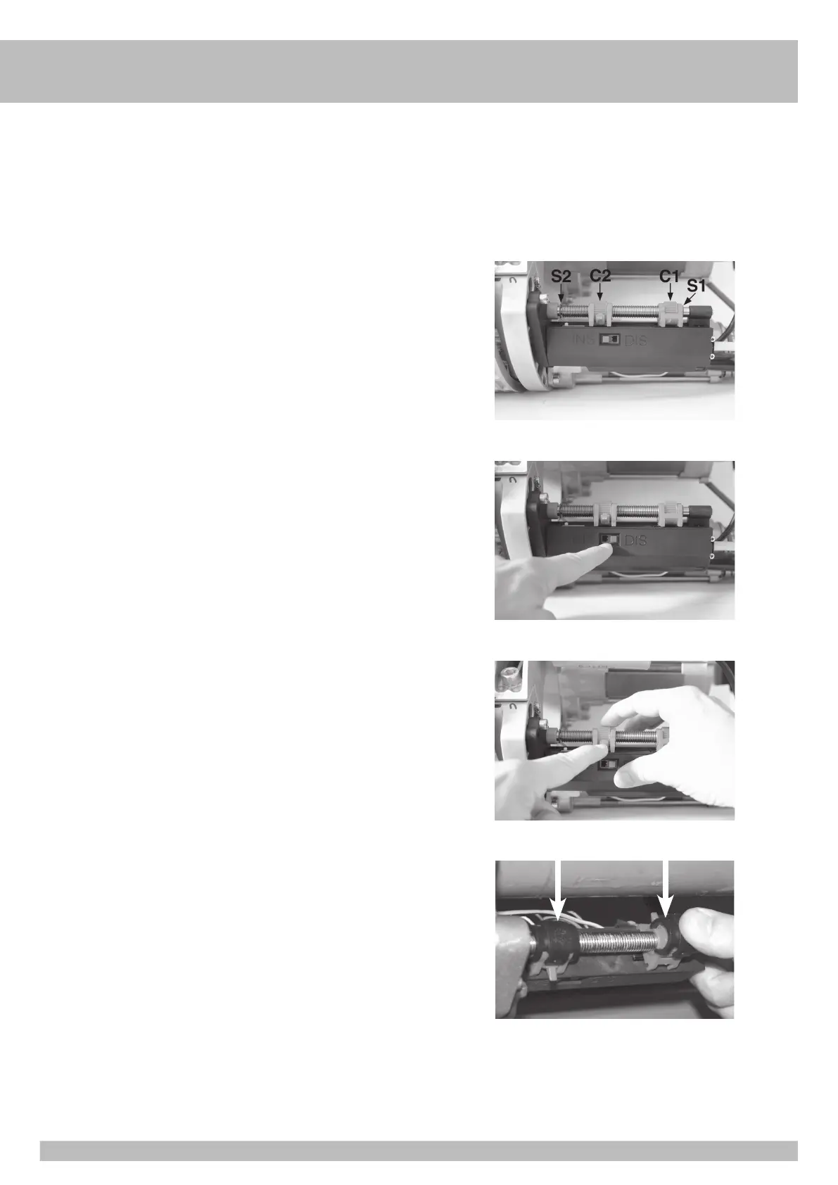 2 - Despues, se deberà que reponer los seeger S1 y S2 el la barra roscada del fin de carrera.