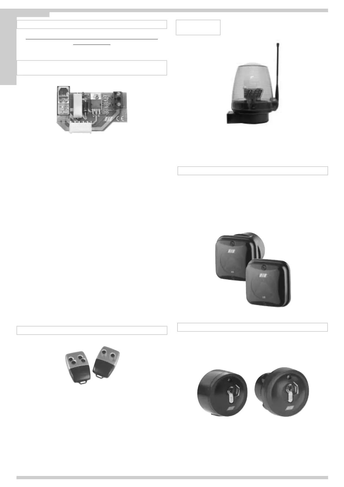 Add the SYNCRO TRANSMITTER, code ACG8028, for more than 2 photocells couples