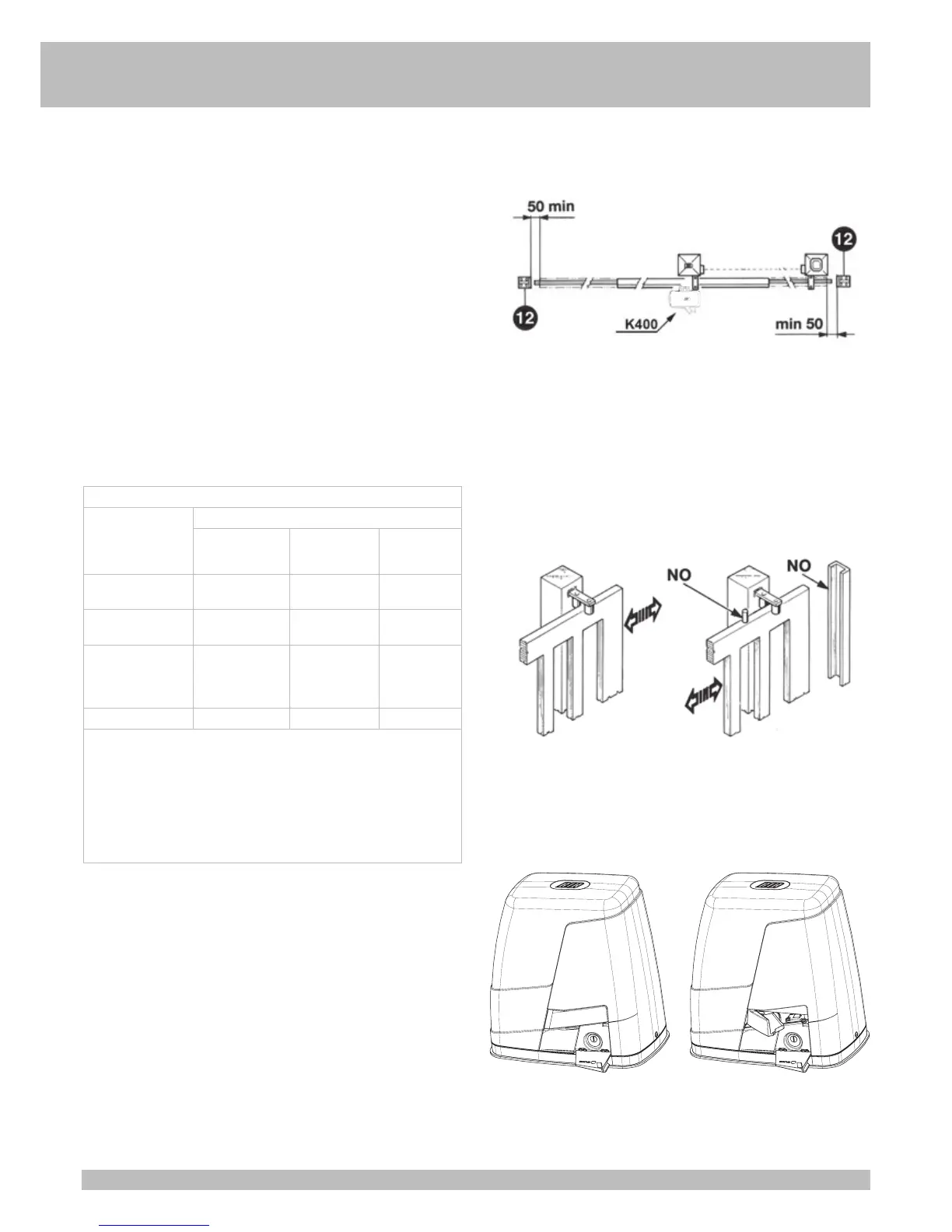 - The door/gate leaf does not have a pedestrian door. In the opposite case it is necessary