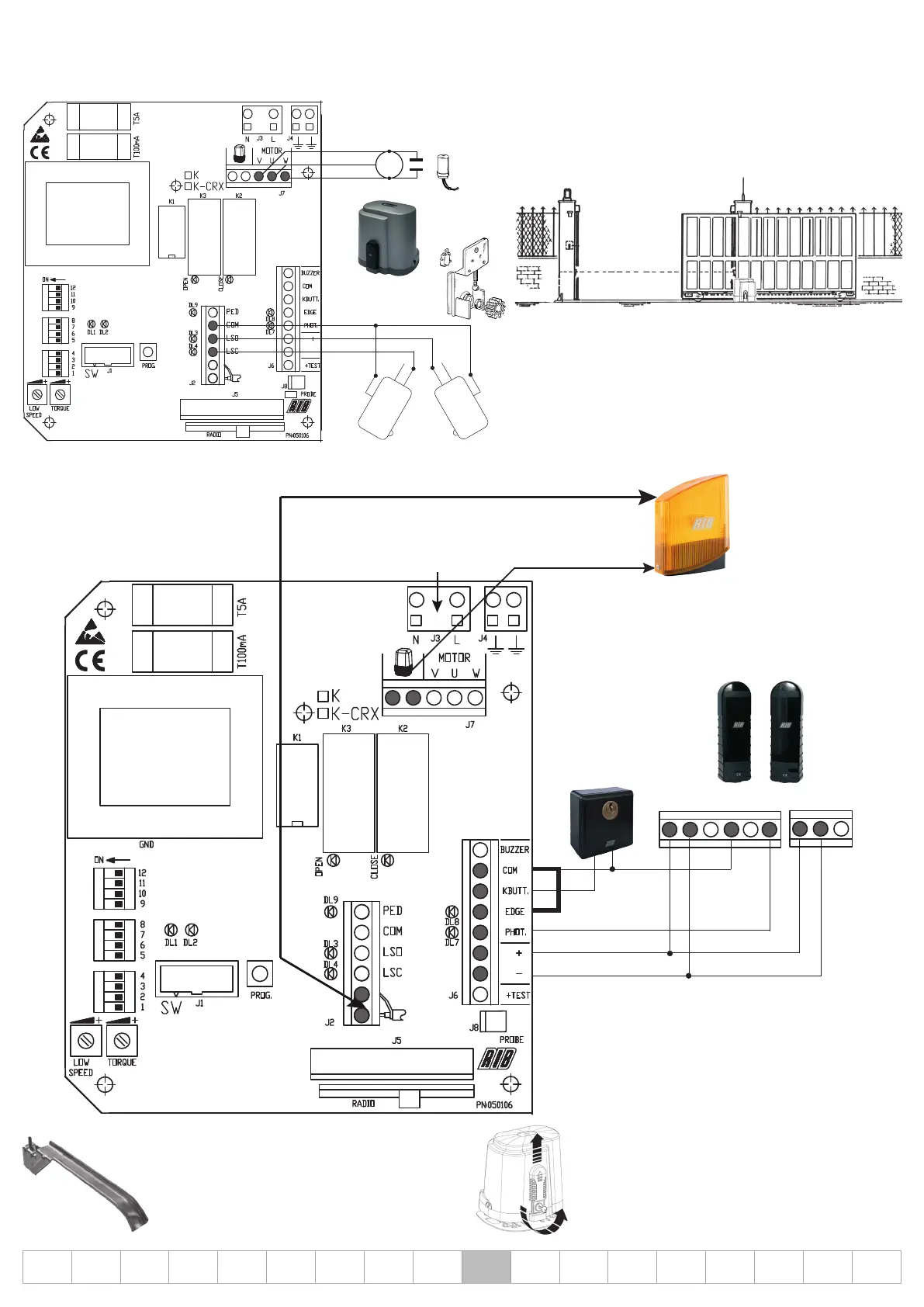1° Свързване на двигателя и крайните изключватели (изпълнено в завода)