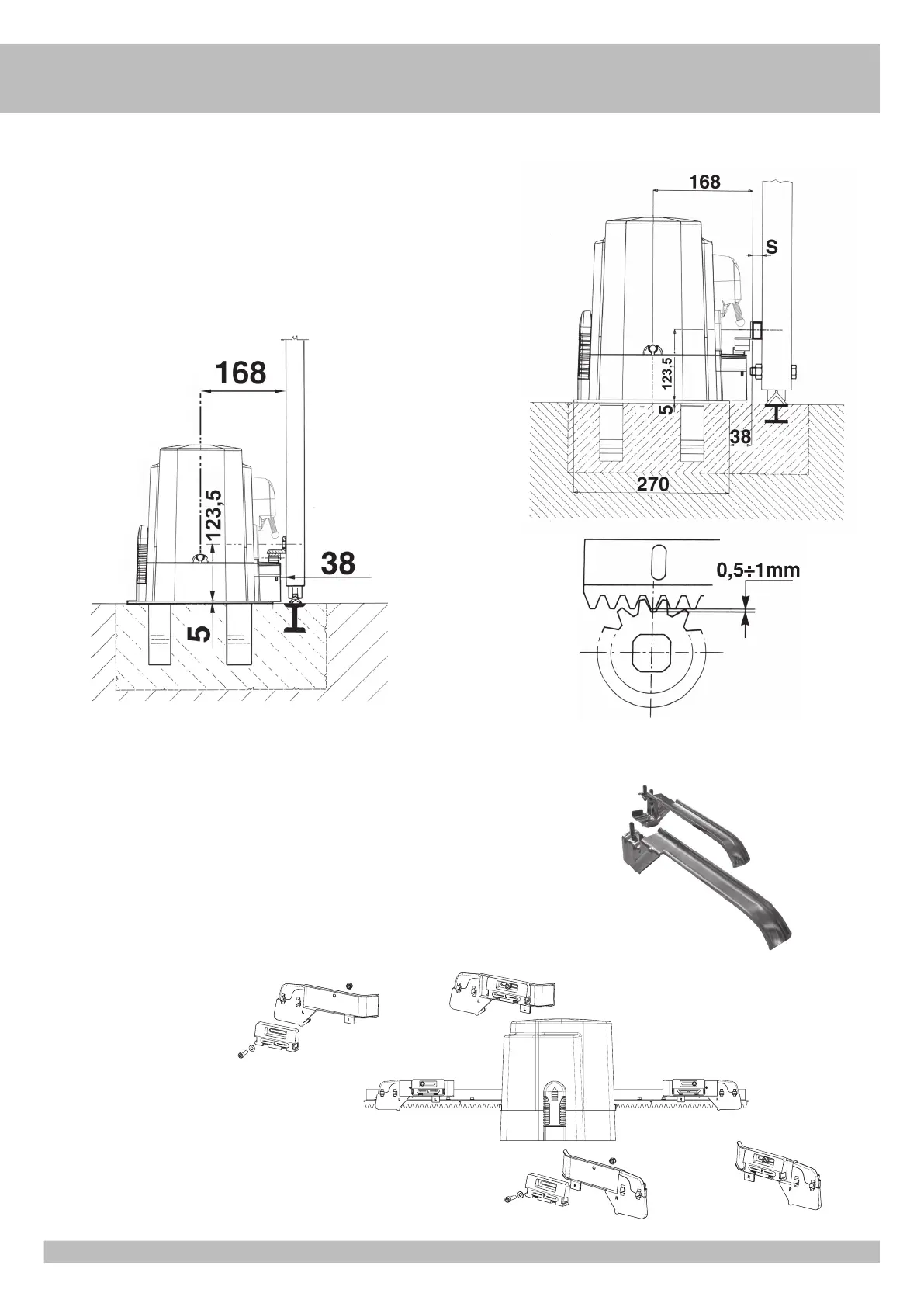 mobile du portail et les filetez en utilisant un taraud M6 (Ø 7 mm et M8 pour crémaillère
