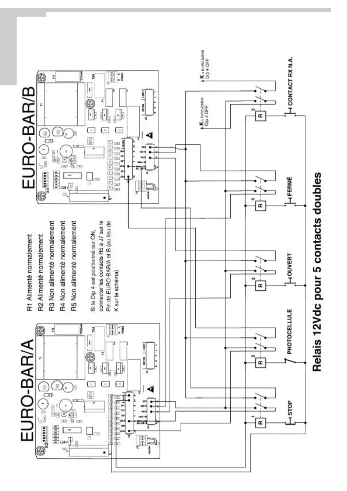 SCHÉMA DE CONNEXION POUR LA COMMANDE SIMULTANÉE DE DEUX BARRIÈRES