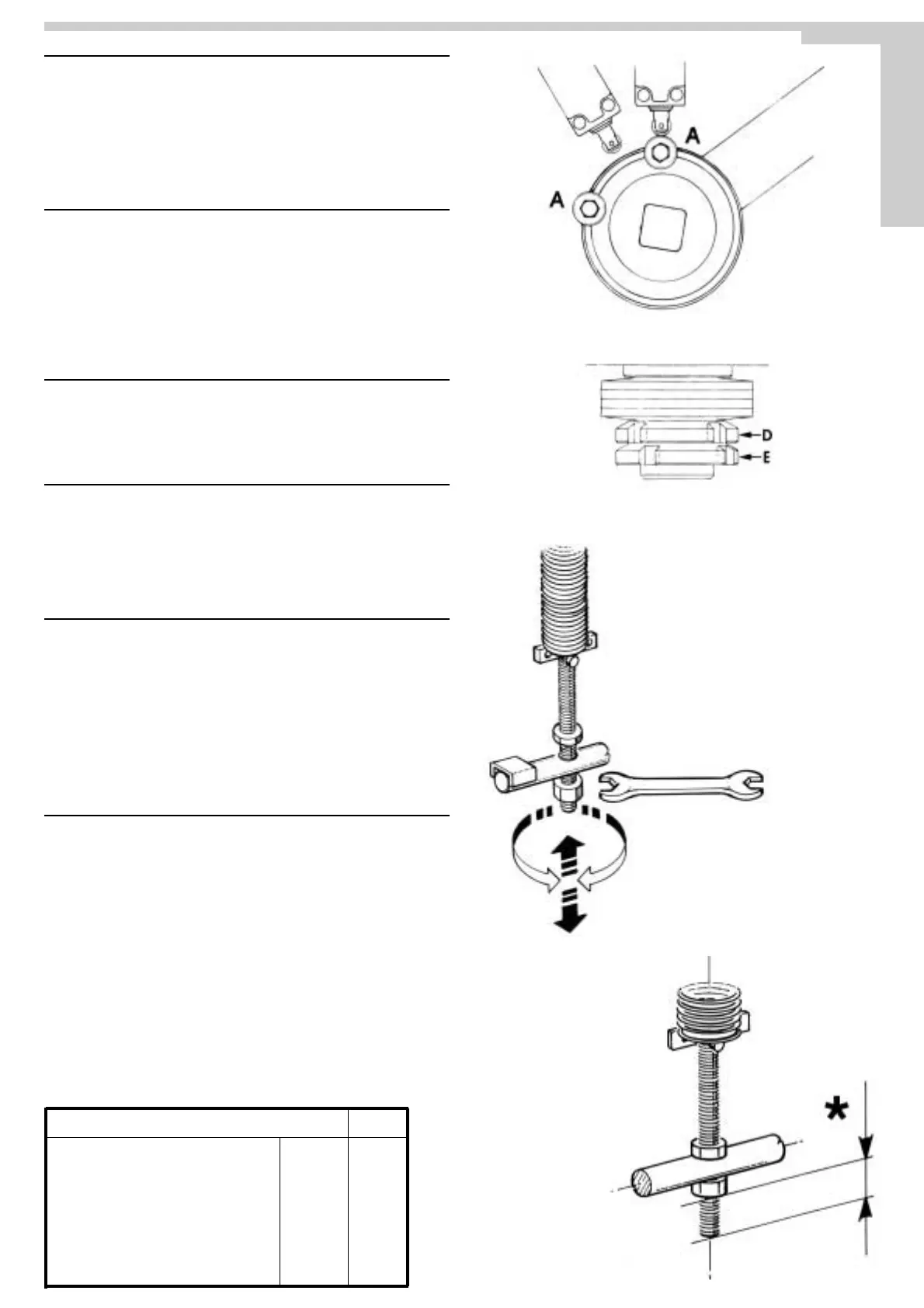 To adjust the safety clutch, use a ring nut wrench n.30-32, release the ring nut E and