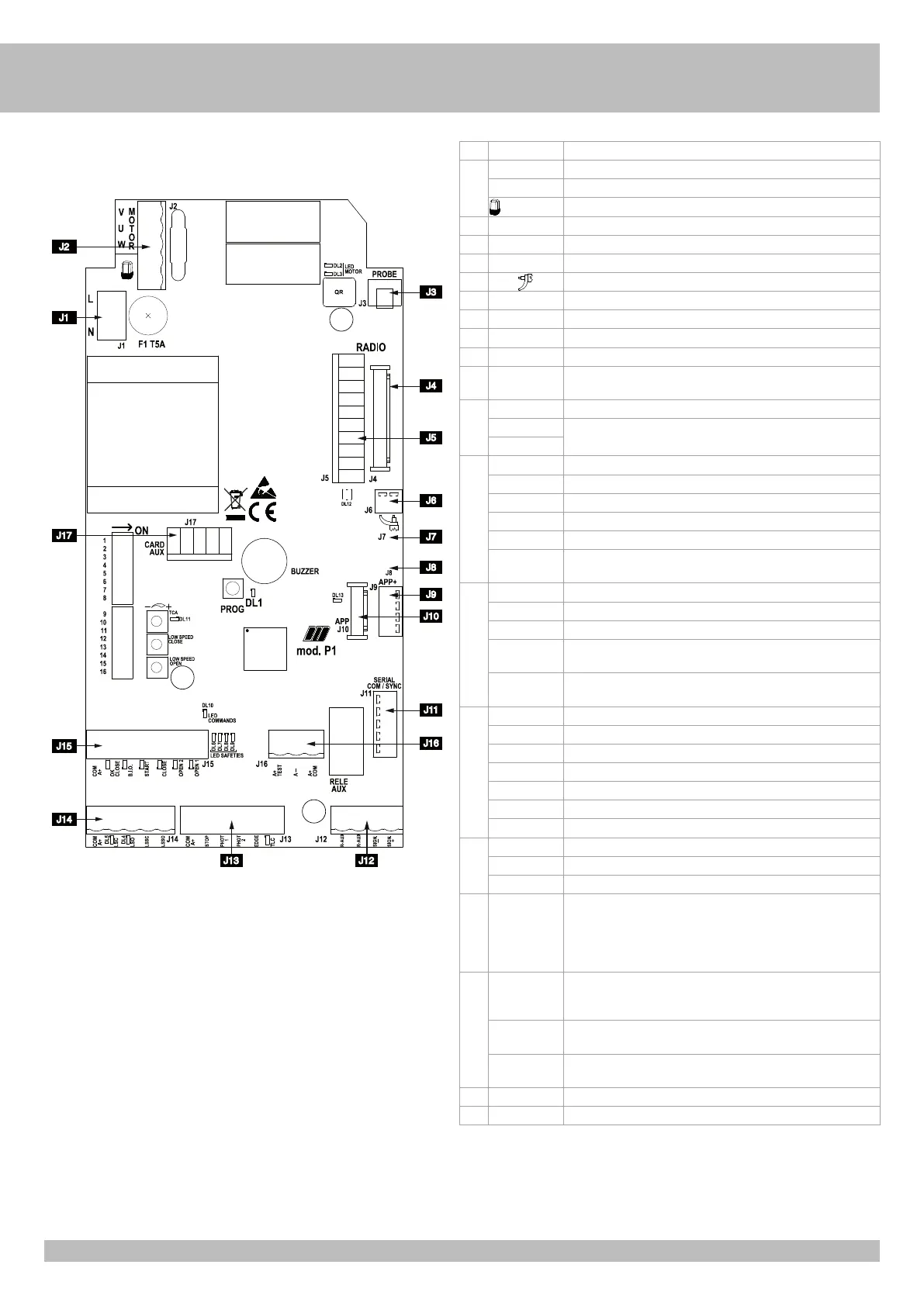 J17 CARD AUX Conector para tarjeta 1 relé (cód. ACQ9080) para la gestión de las