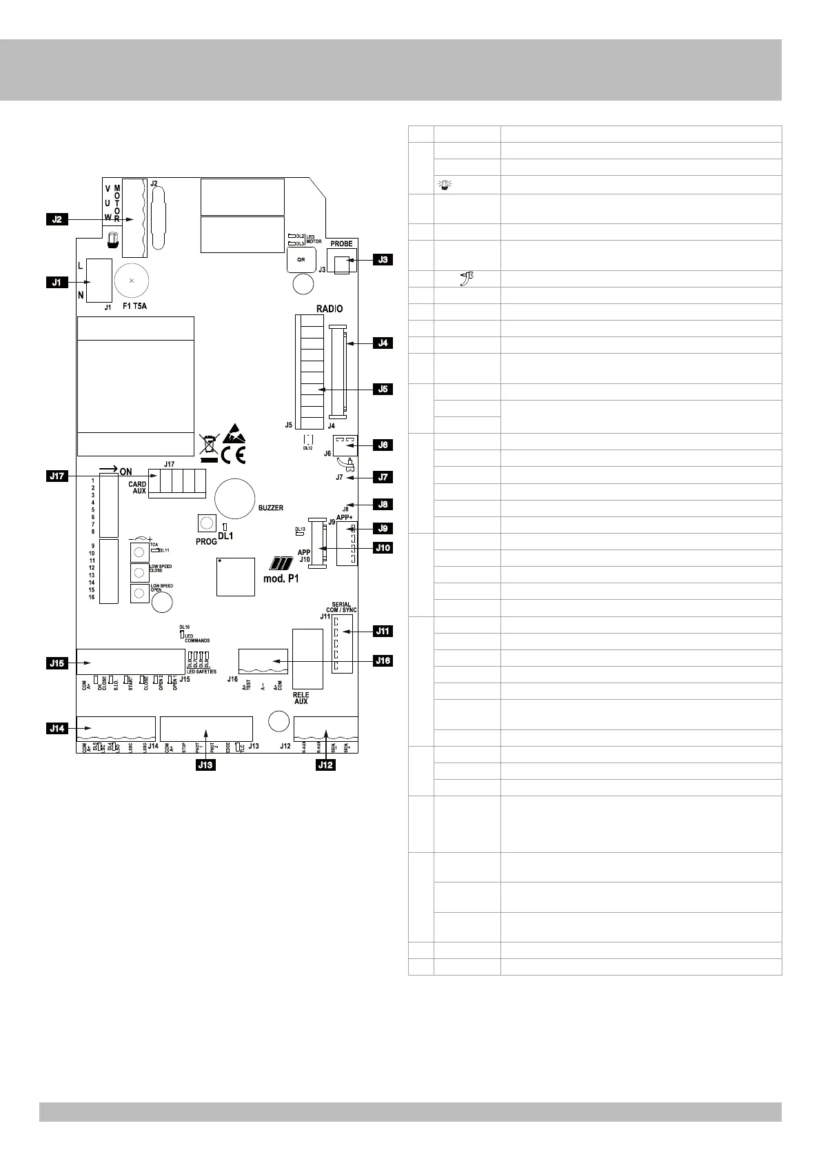 J17 CARD AUX Connettore per scheda 1 relè (cod. ACQ9080) per gestione luce di