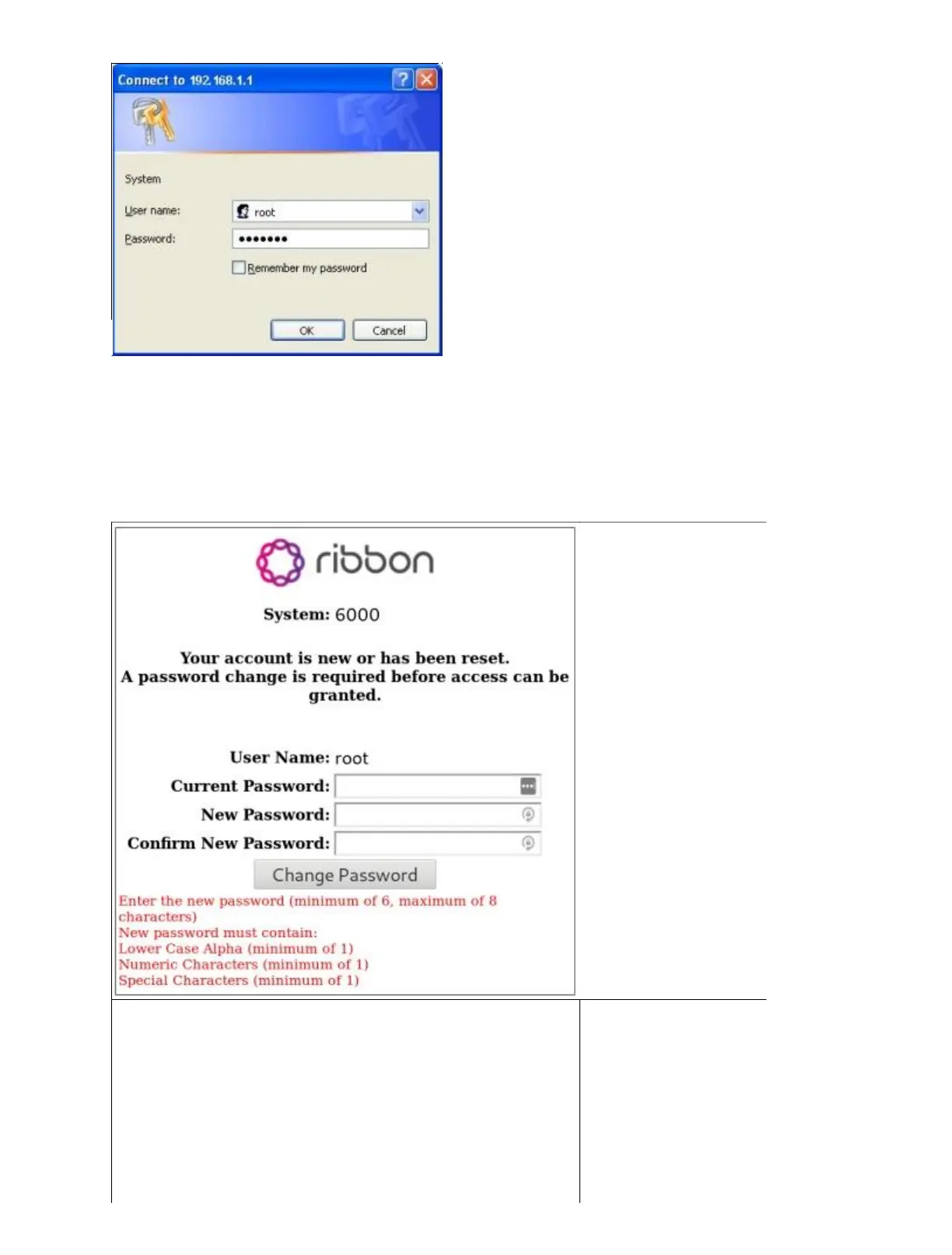 5. Enter your initial password in the field provided: default
