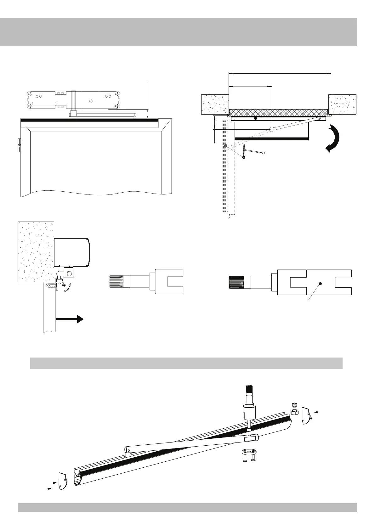 Fixer le guide de coulissement sur le vantail comme indiqué dans les figures, en respectant les mesures indiquées et en coupant les parties du