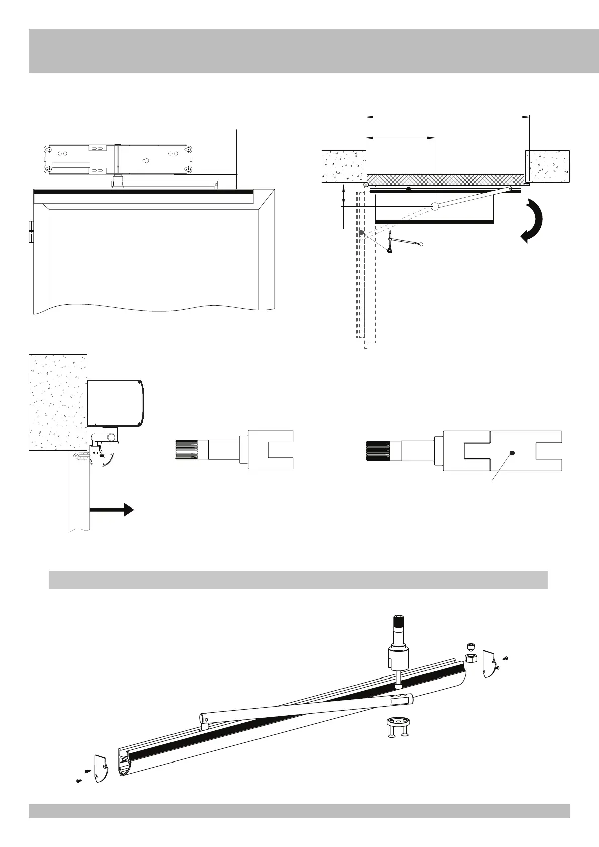 Fissare la guida di scorrimento sull’anta come indicato nelle figure, rispettando le misure idicate e tagliando la parte eccedente della guida se