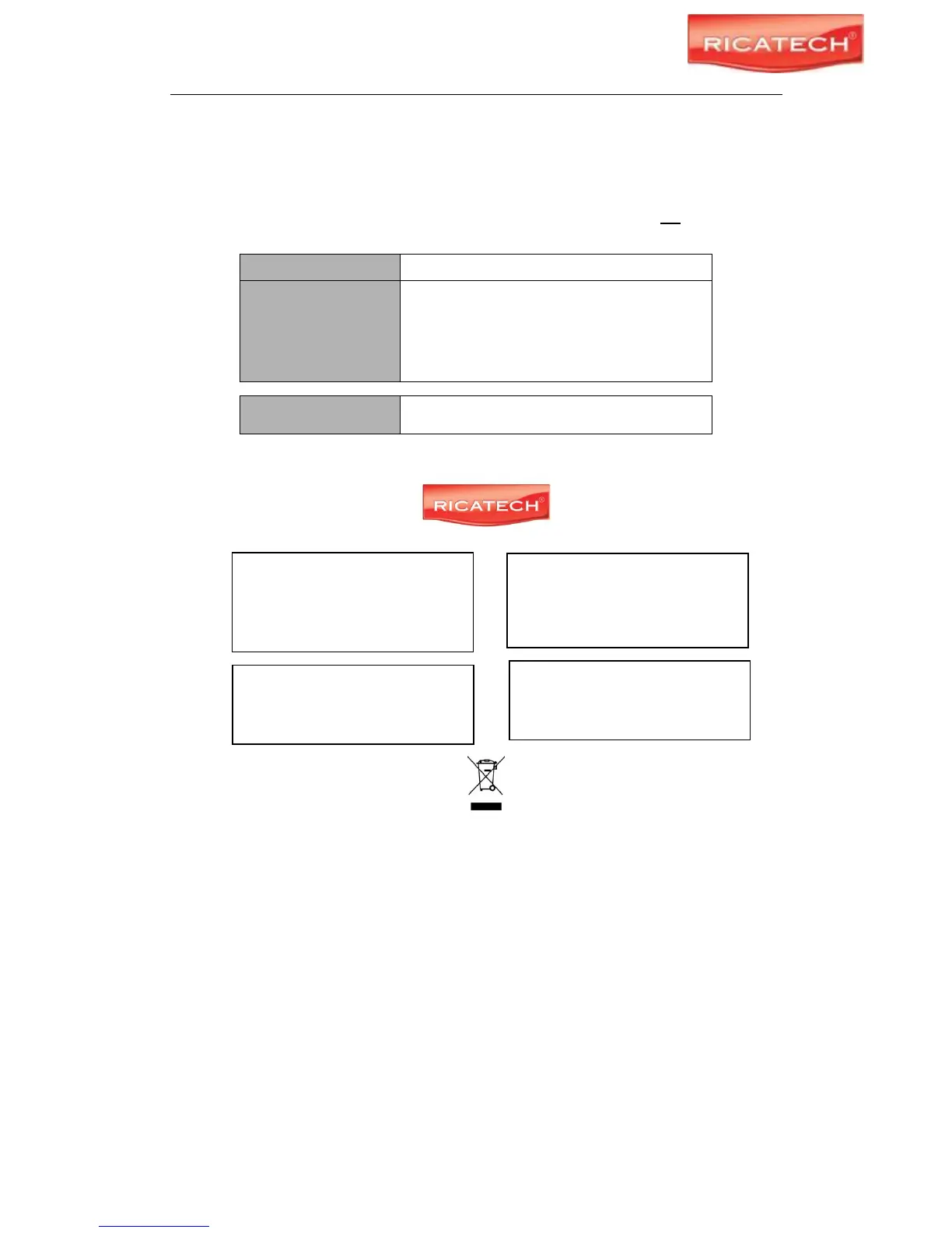 Ricatech BV covers all products (Excl. Acessories) with a 2 year warranty applying to