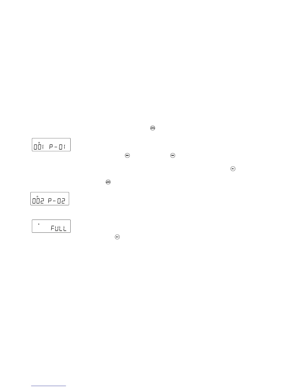4. Appuyez sur PROGRAMME / pour conrmer, l’écran afche le numéro de piste stockée et la
