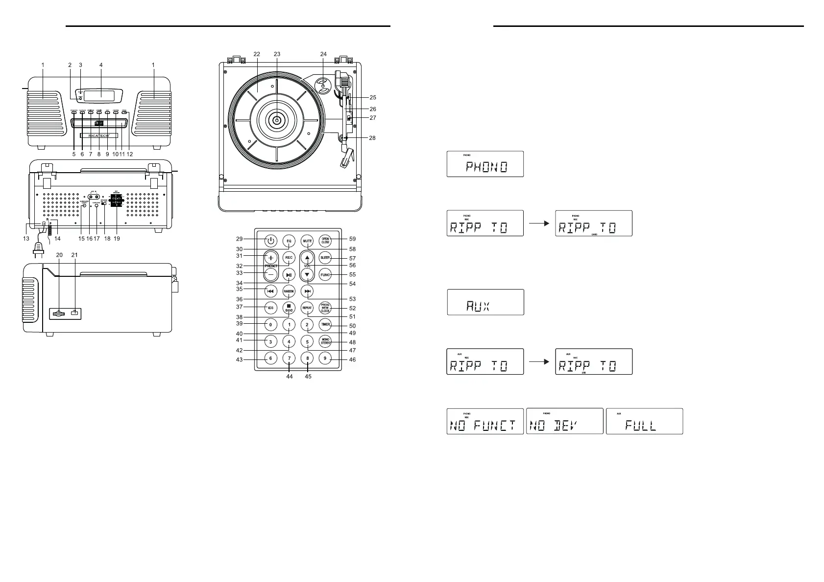 3. Het pictogram " REC " en het bericht " RIPP TO" worden weergegeven, het pictogram " PHONO " begint te knipperen.