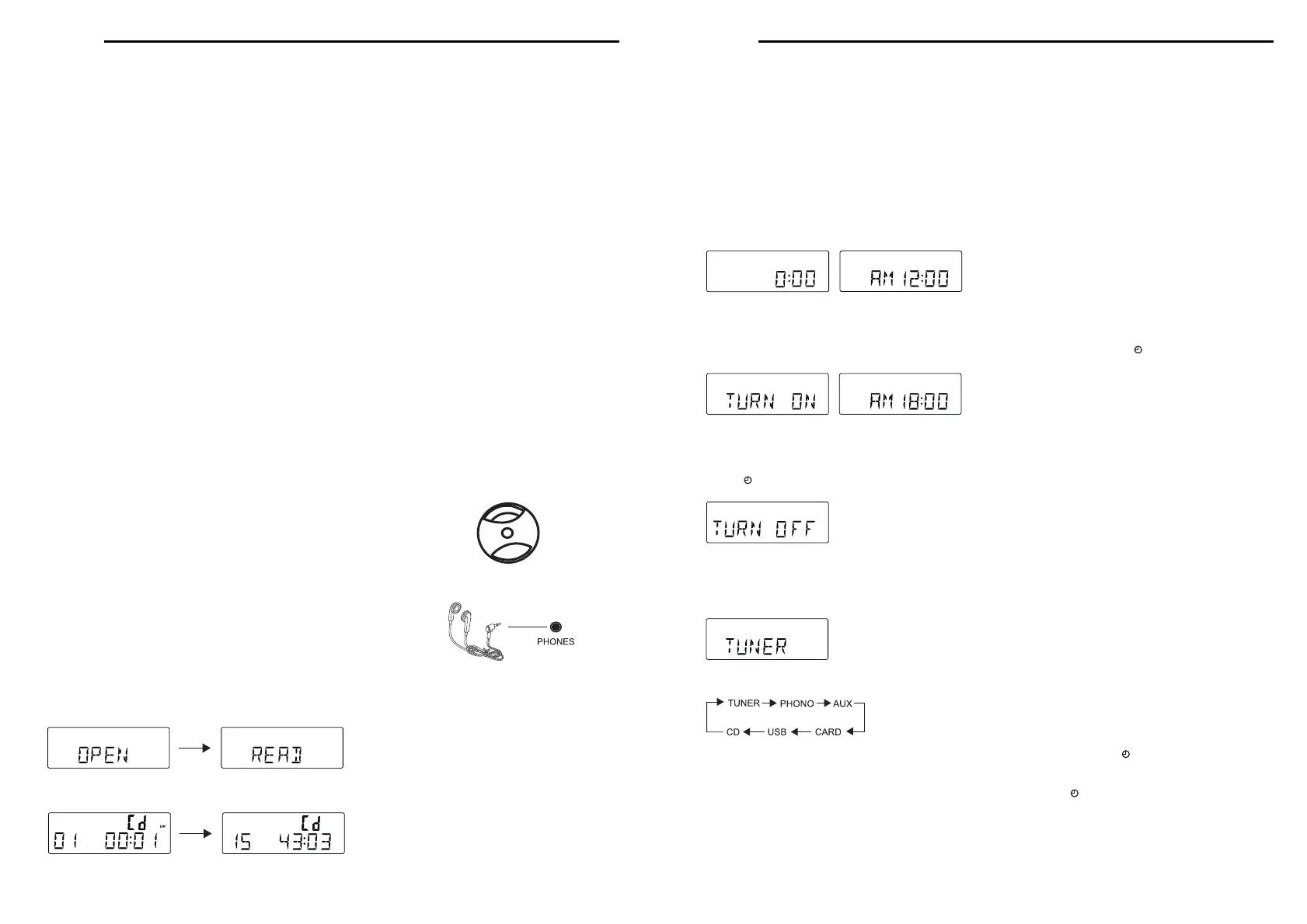 On peut utiliser l’appareil comme réveil et la source sélectionnée (CD, TUNER, USB, SD CARD O PHONO) sonnera à l’heure