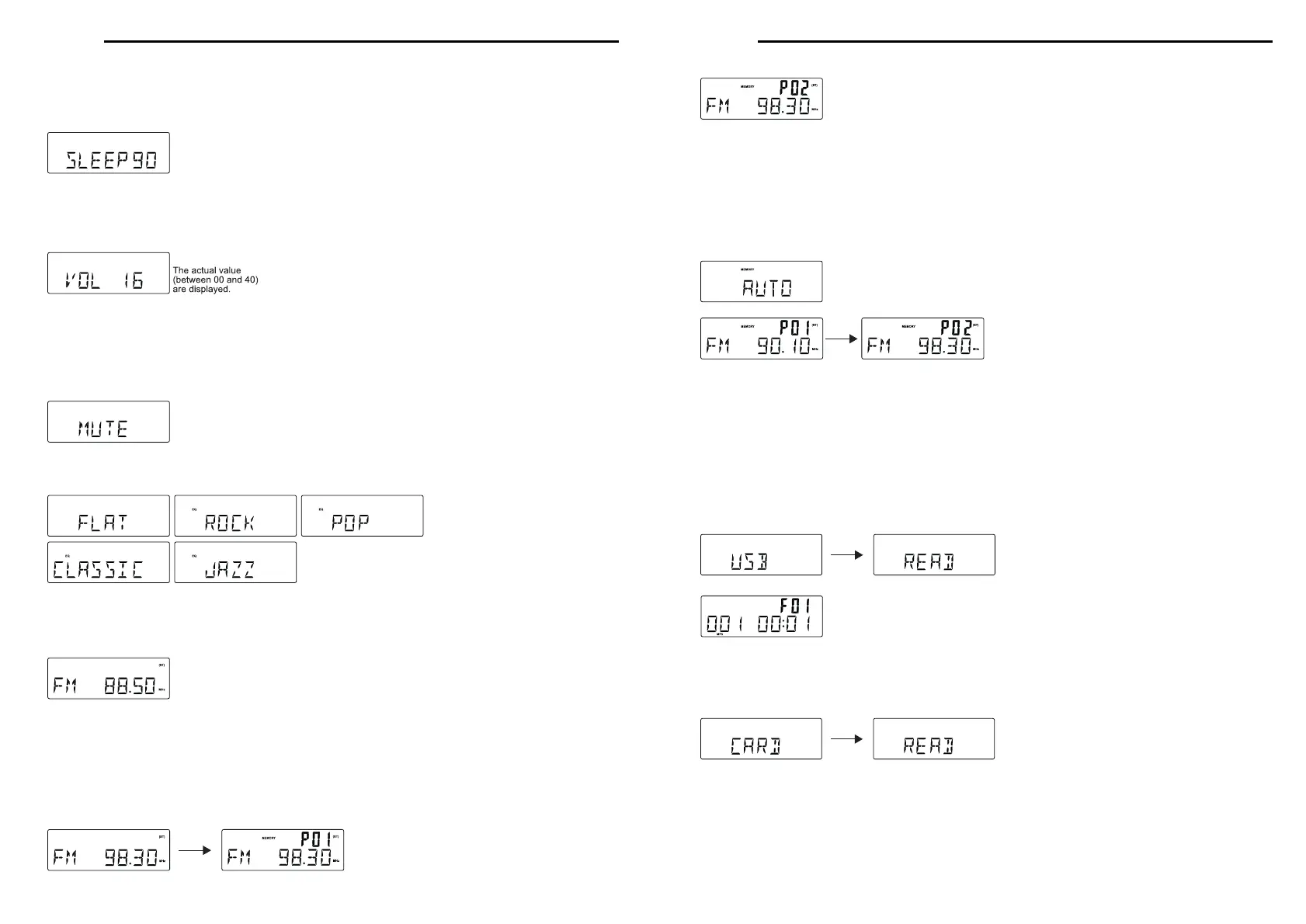 4. Manual Tuning – Press FF (9/53) / FB (8/35) briefly and repeatedly until found a station.