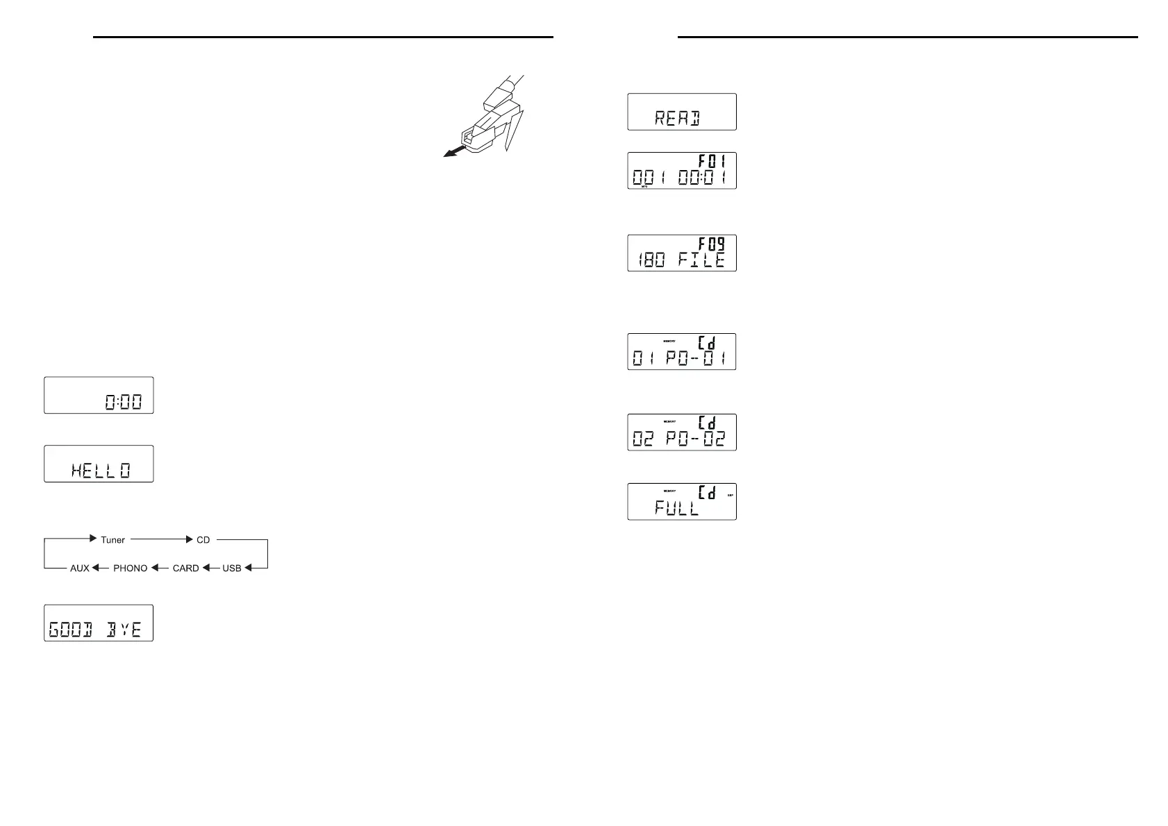 connectés), la lecture s’arrêtera et reviendra au début de la piste actuelle, le recherchera les contenus du USB/carte SD et