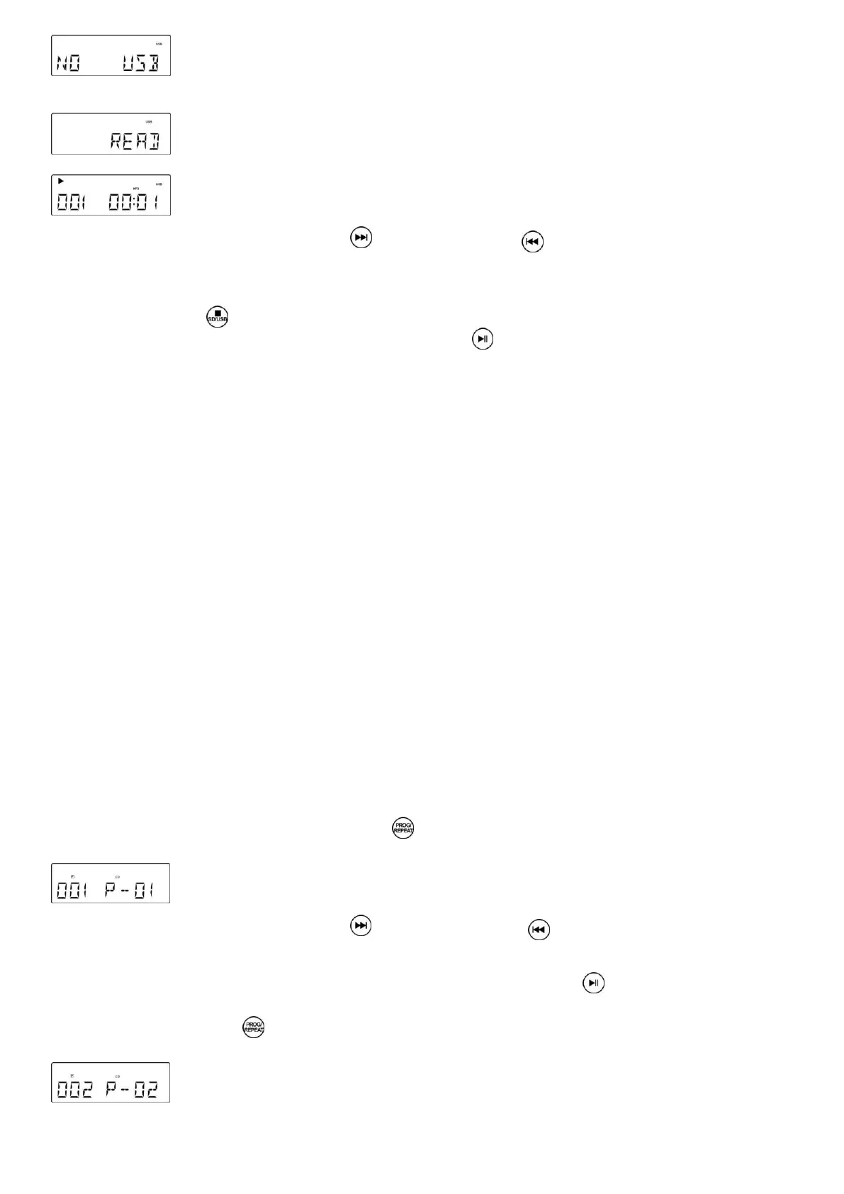 7. La piste n°1 du dossier racine (dossier 1) est lue automatiquement après la lecture du contenu du périphérique USB.