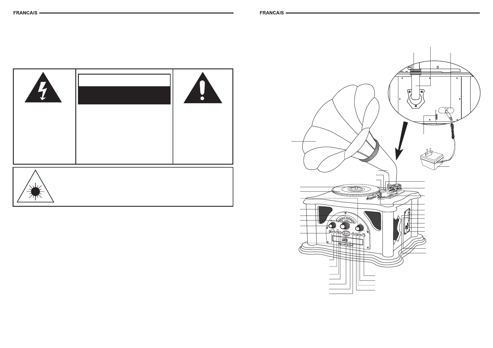 PAS CET APPAREIL À LA PLUIE OU À L'HUMIDITÉ. NE RETIREZ PAS LE