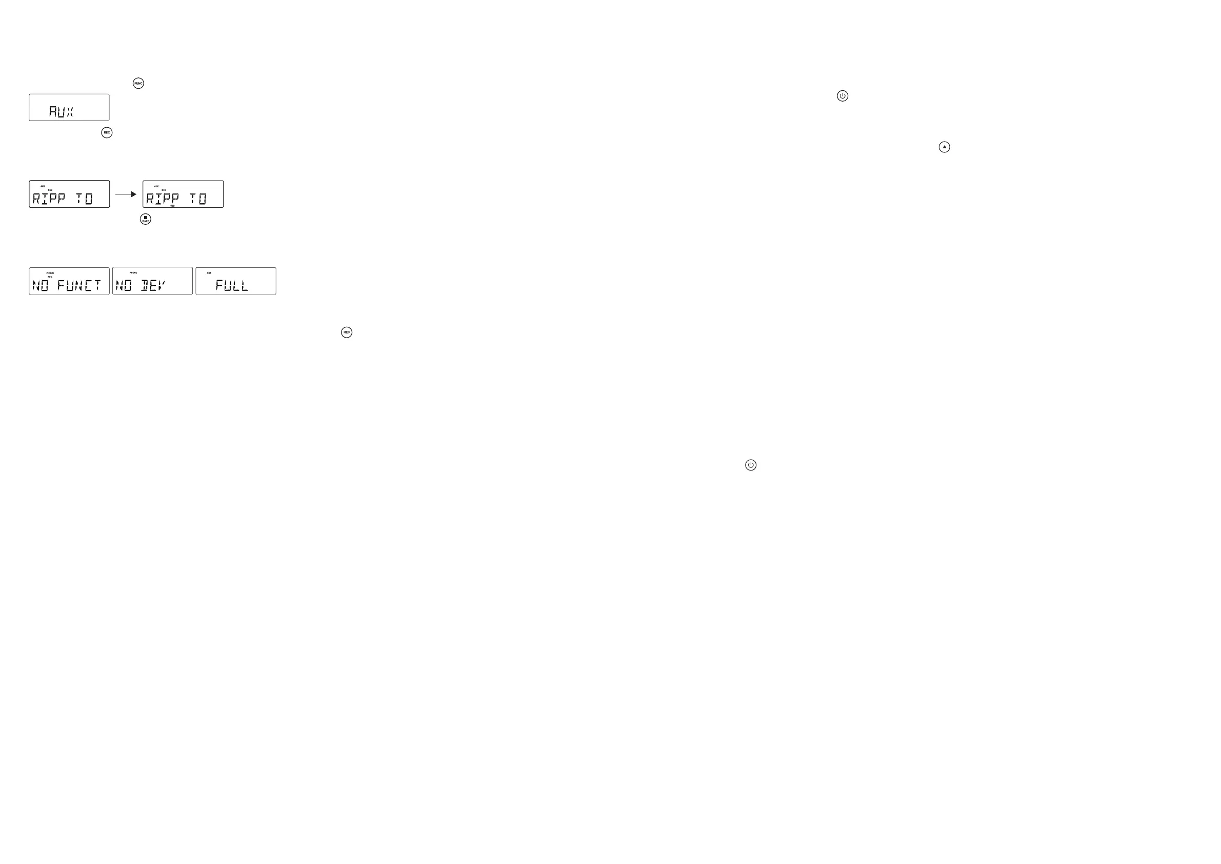 3. Icon “REC” and message “ RIPP TO “ are displayed, icon “ AUX “ start ashing.